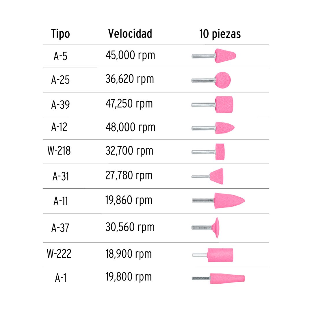 Juego de 10 piedras montadas zanco 1/4″ TRUPER