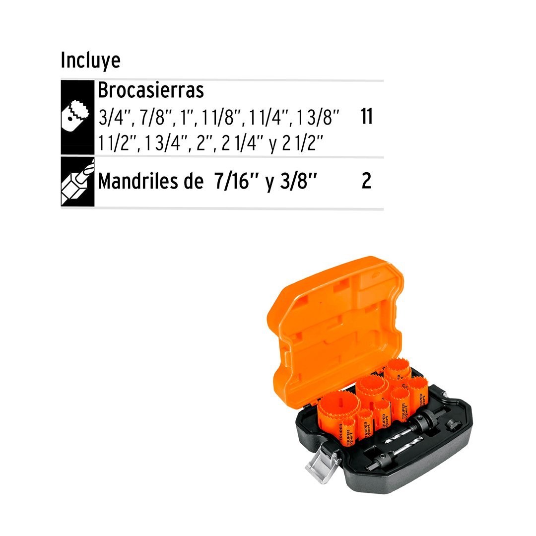 Juego de 11 sierras copa bimetálicas y 2 guías TRUPER cantidad
