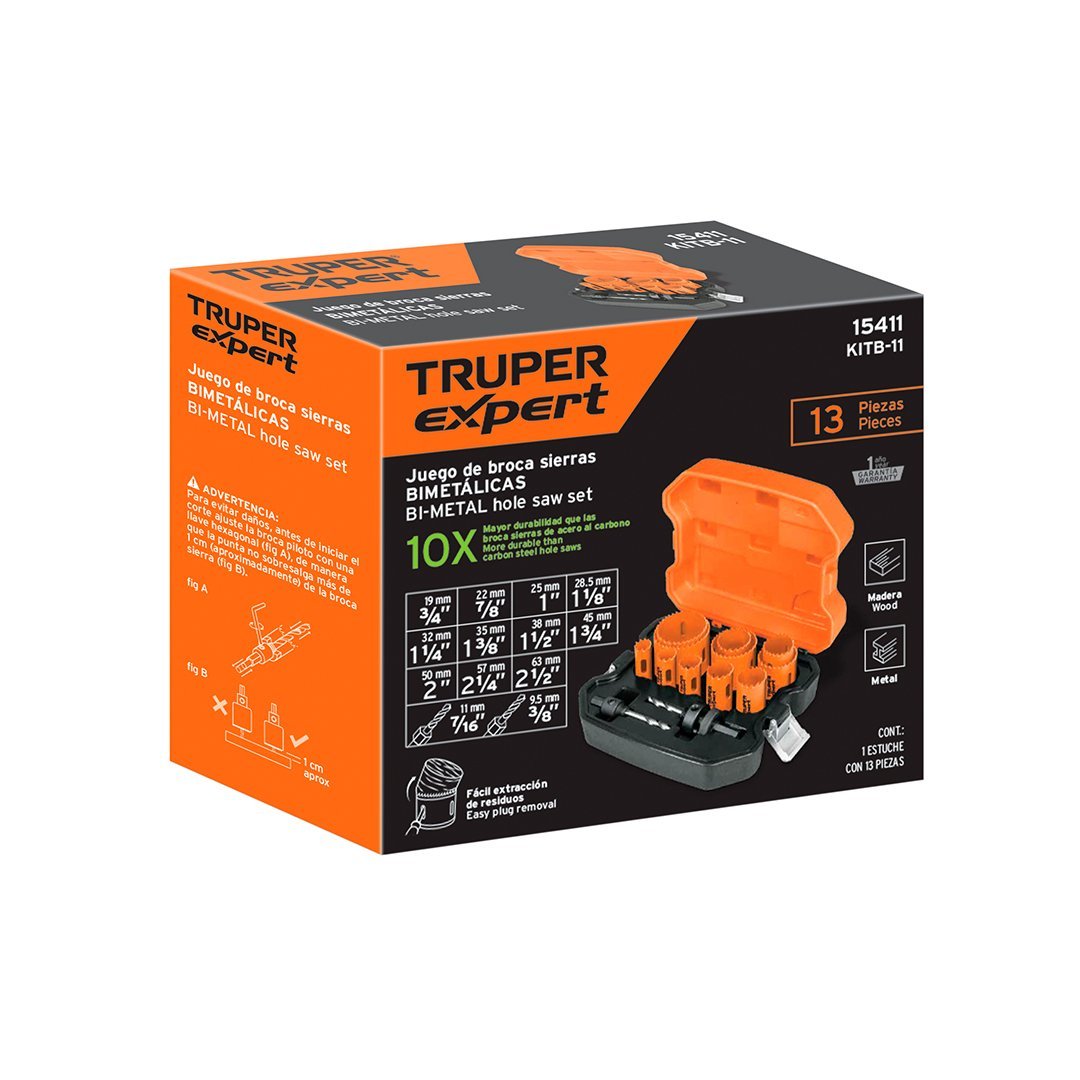 Juego de 11 sierras copa bimetálicas y 2 guías TRUPER