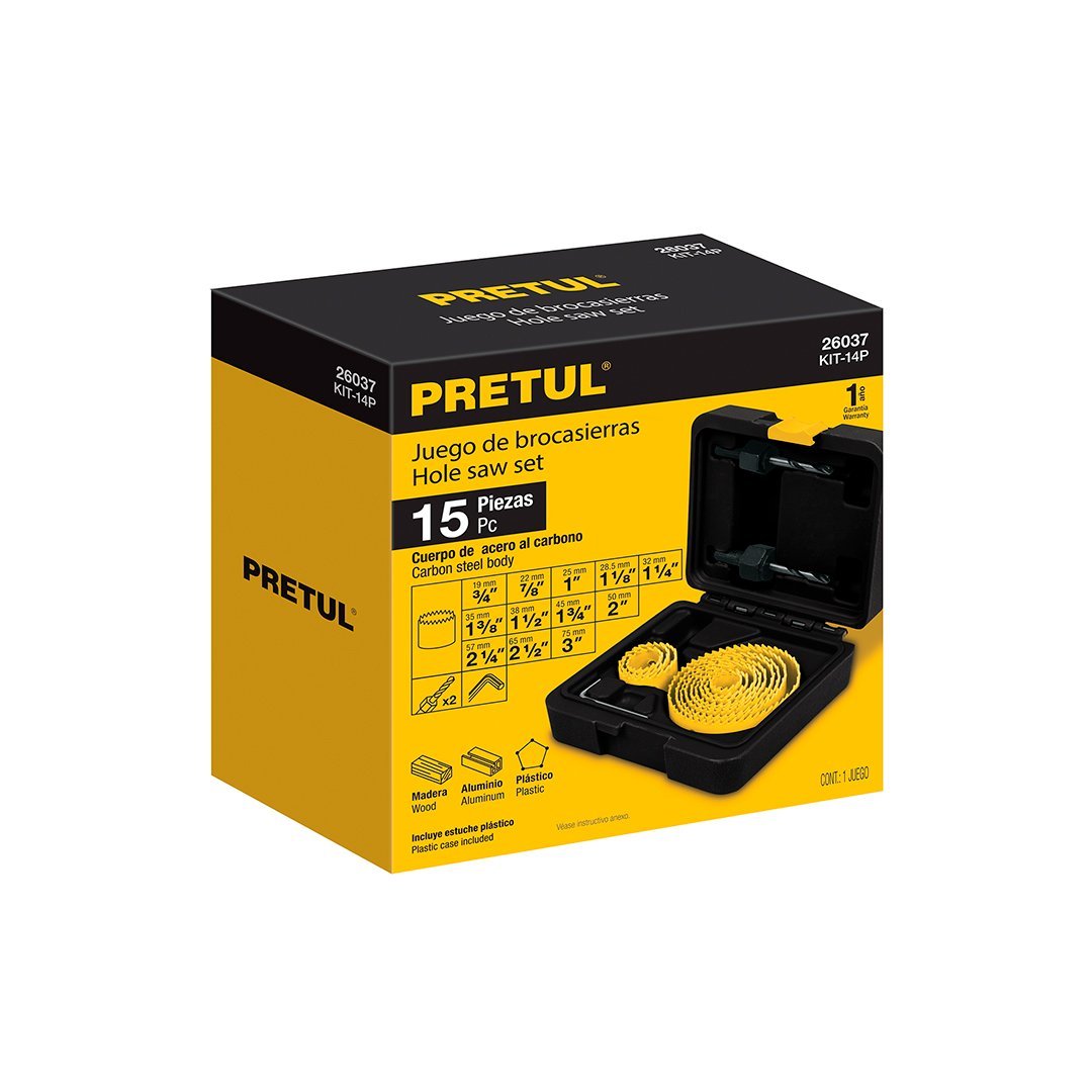 Juego de 12 sierras copa, 2 guías y llave allen PRETUL