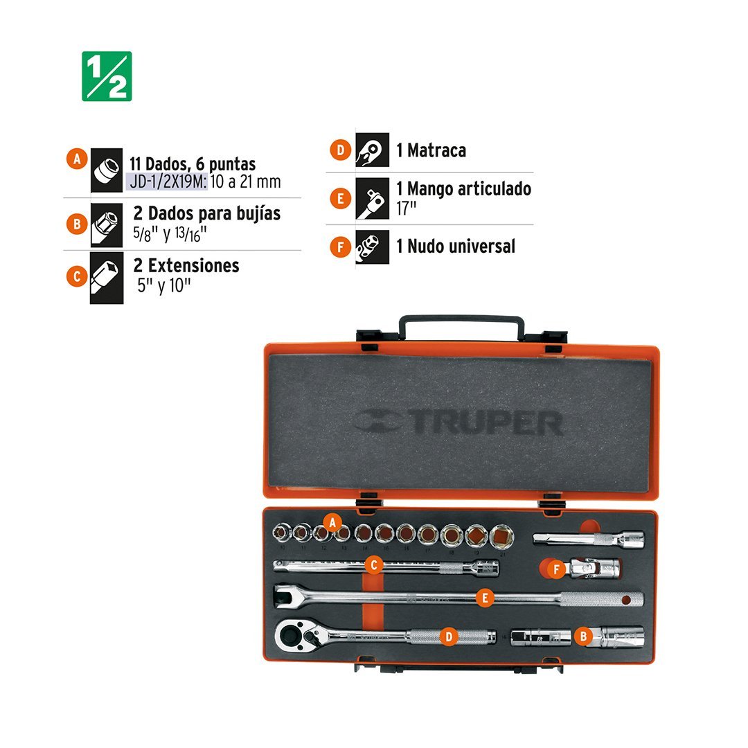 | 2 Dados para bujías: 5/8″ y 13/16″ |