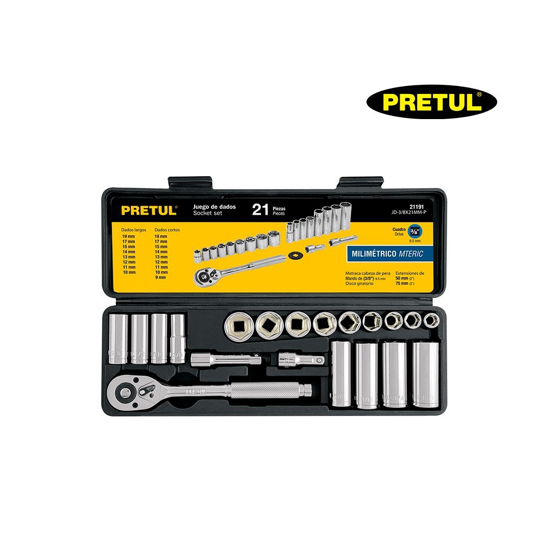 Juego de 21 herramientas para mecánico 3/8″ mm PRETUL