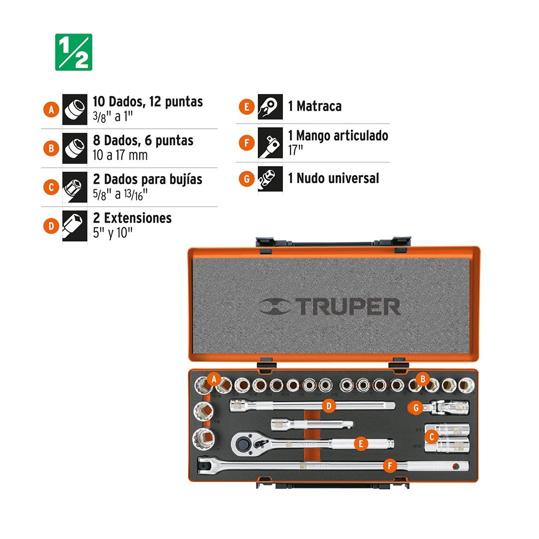 | 10 Dados de 12 puntas: 3/8″ a 1″ |