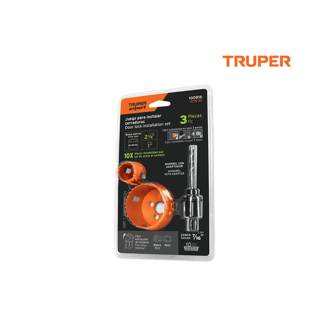 Juego de 3 piezas para instalar cerraduras TRUPER