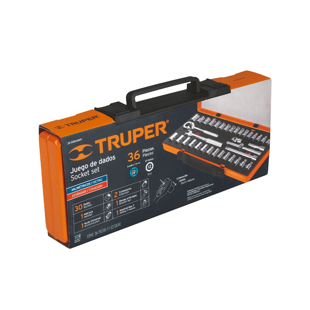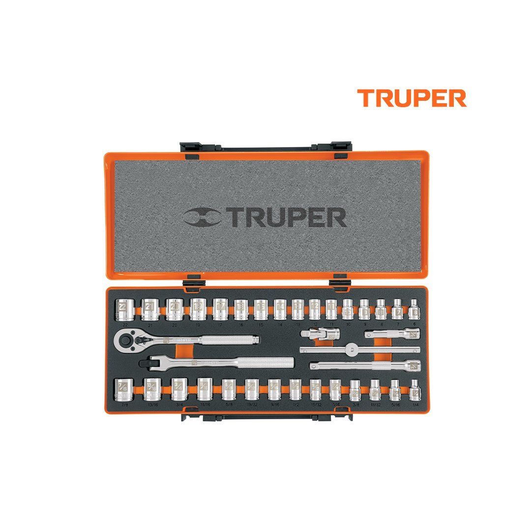 | 30 Dados 12 puntas: (16) 6 a 22 mm, (14) 1/4″ a 7/8″ |