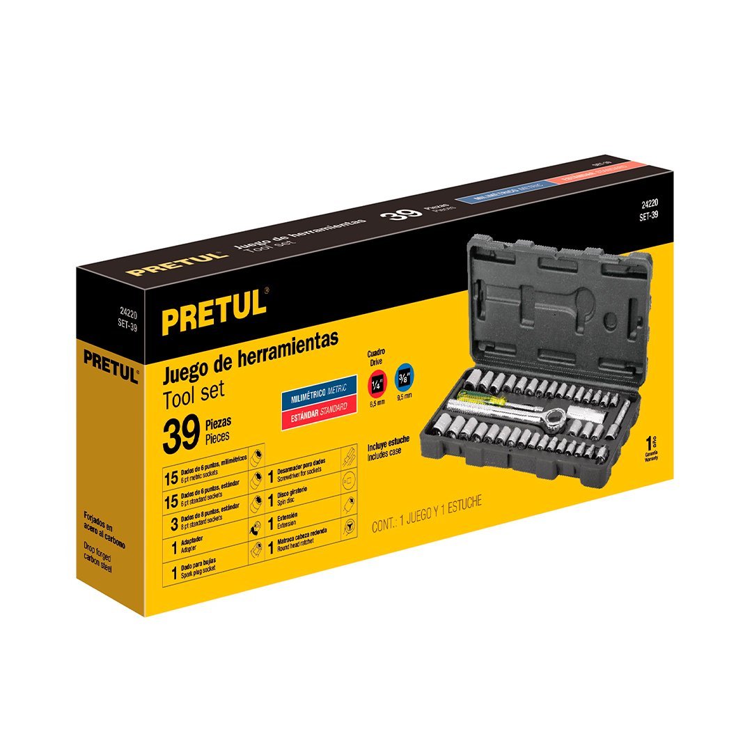 Juego de 39 herramientas para mecánico 1/4″ y 3/8″ PRETUL