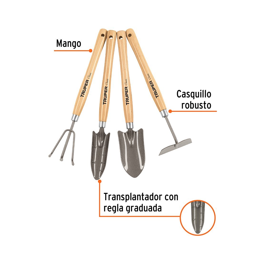 Juego de 4 herramientas para jardín, mangos 31 cm TRUPER