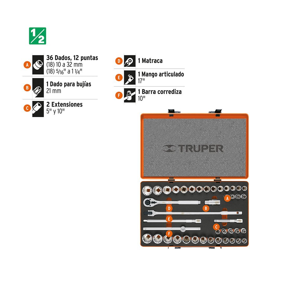 | 36 Dados: (18) 10 a 32 mm, (18) 5/16″ a 1 1/4″ |