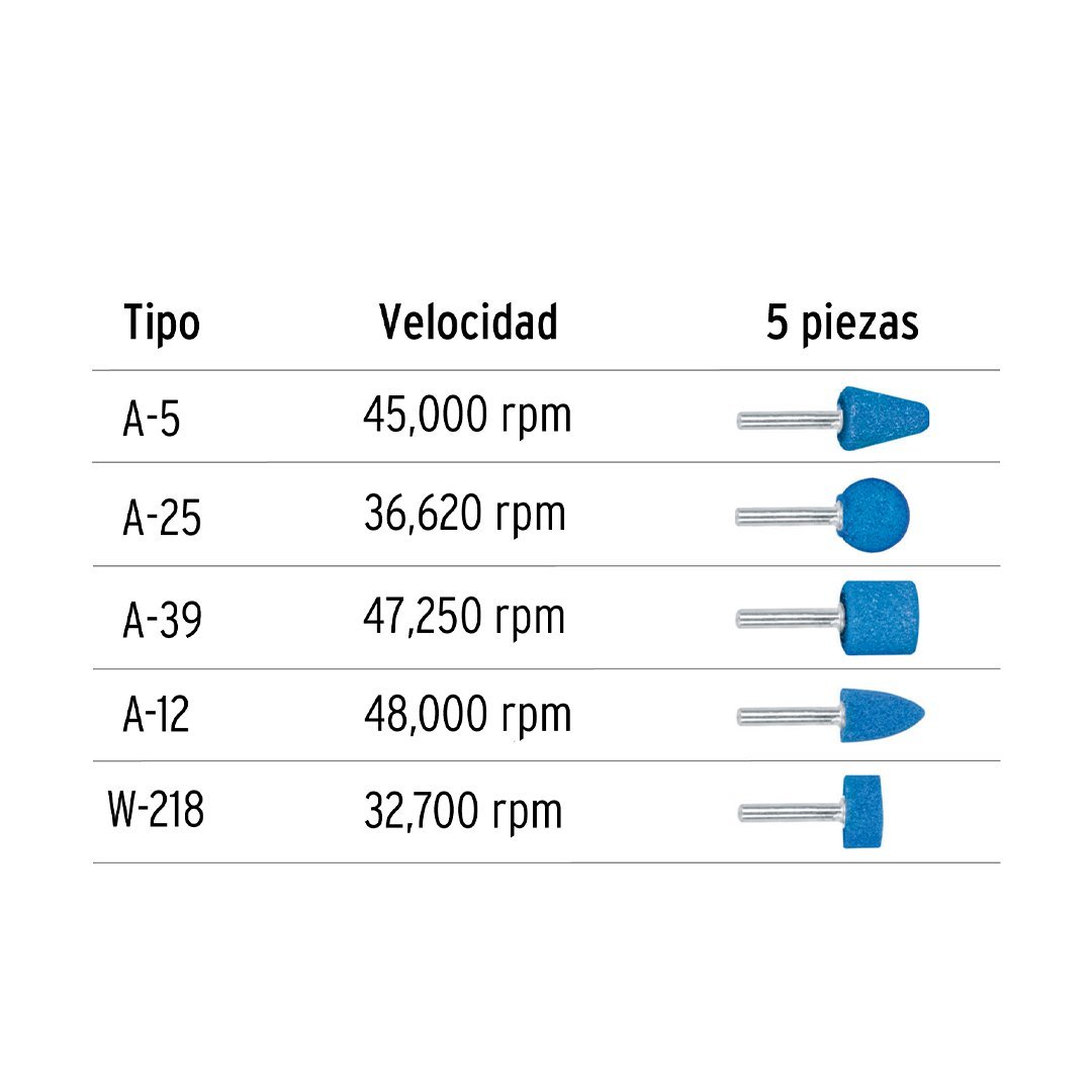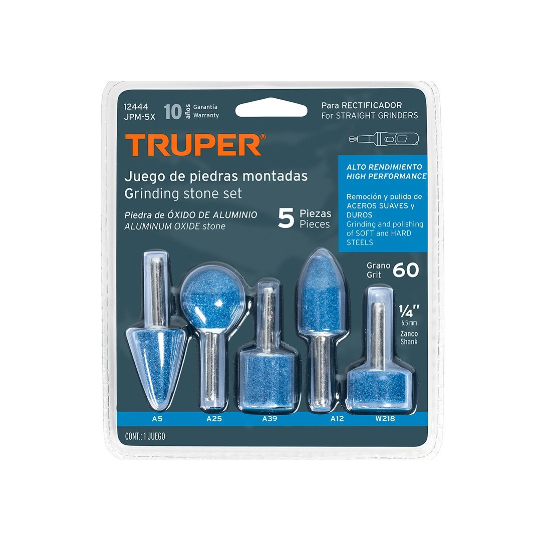 Juego de 5 piedras montadas zanco 1/4", alto rendimiento TRUPER cantidad