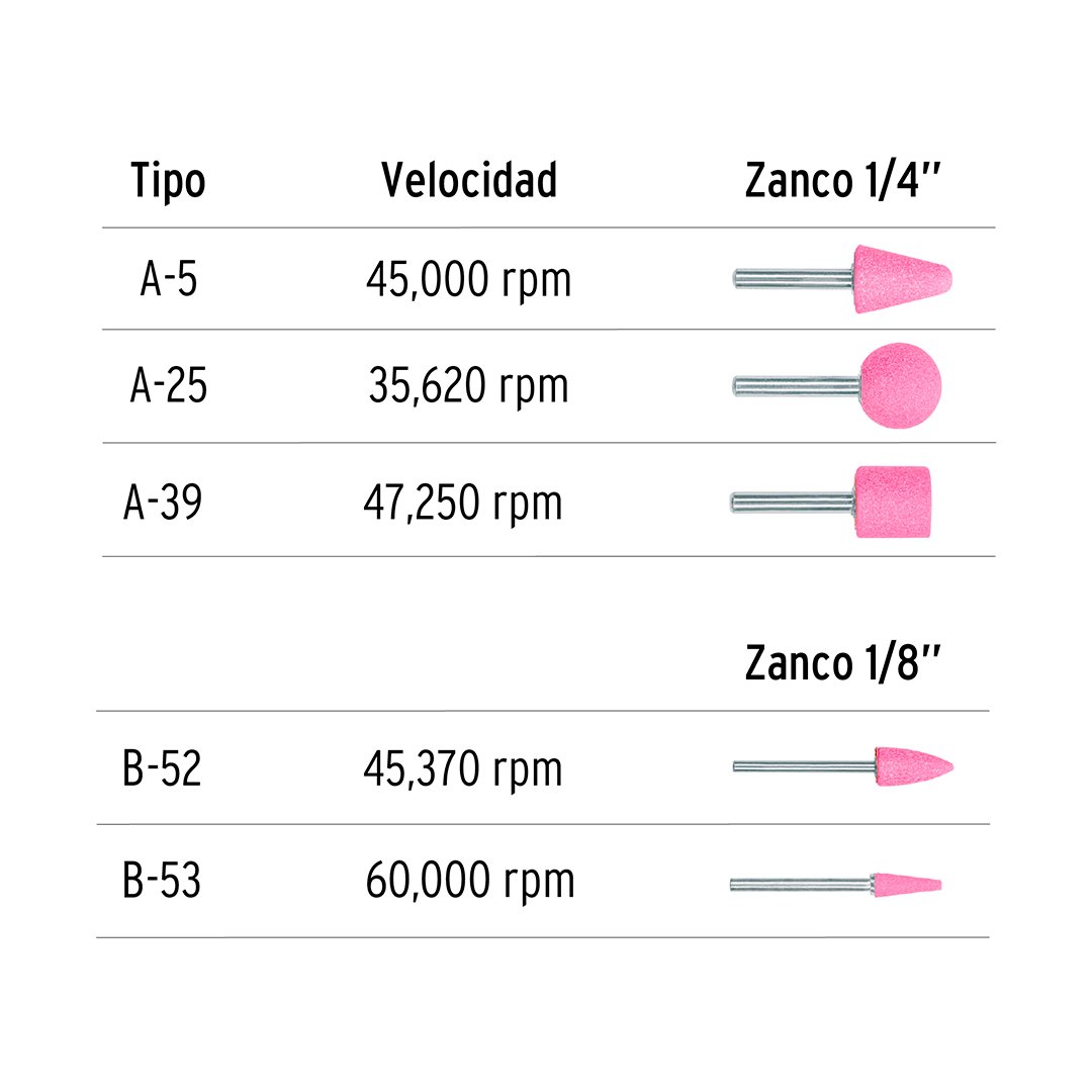 Juego de 5 piedras montadas zanco 1/4″ y 1/8″ TRUPER