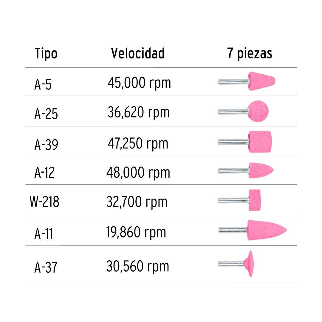 Juego de 7 piedras montadas zanco 1/4″ TRUPER