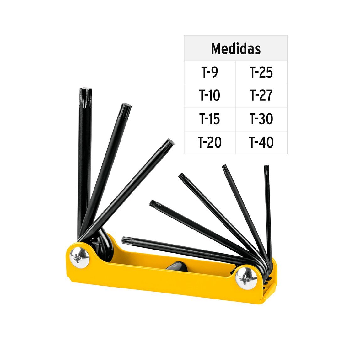 8 llaves torx (T-9, T-10, T-15, T-20, T-25, T-27, T-30, T-40)