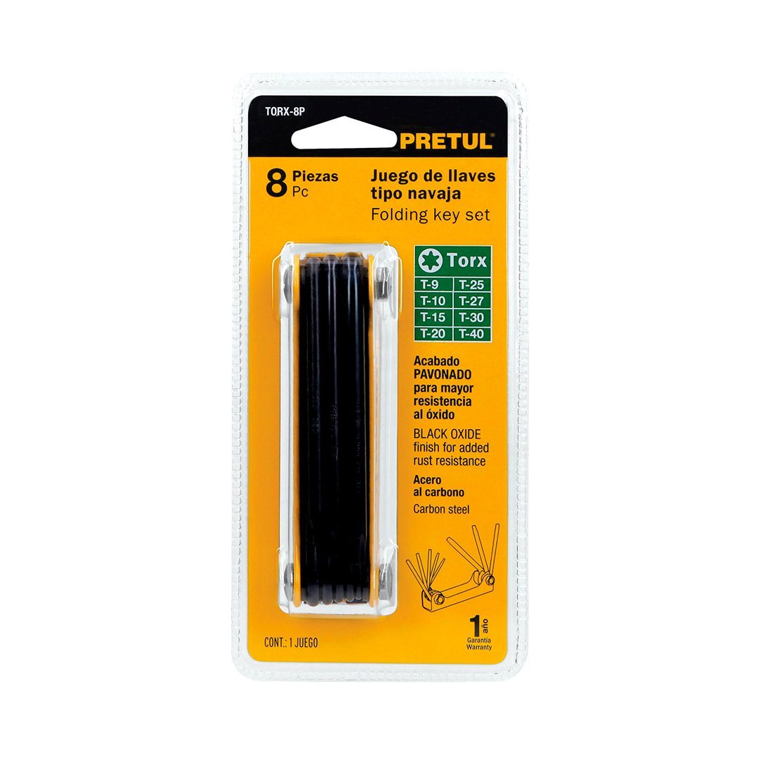 Juego de 8 llaves torx tipo navaja, cuerpo de lámina PRETUL