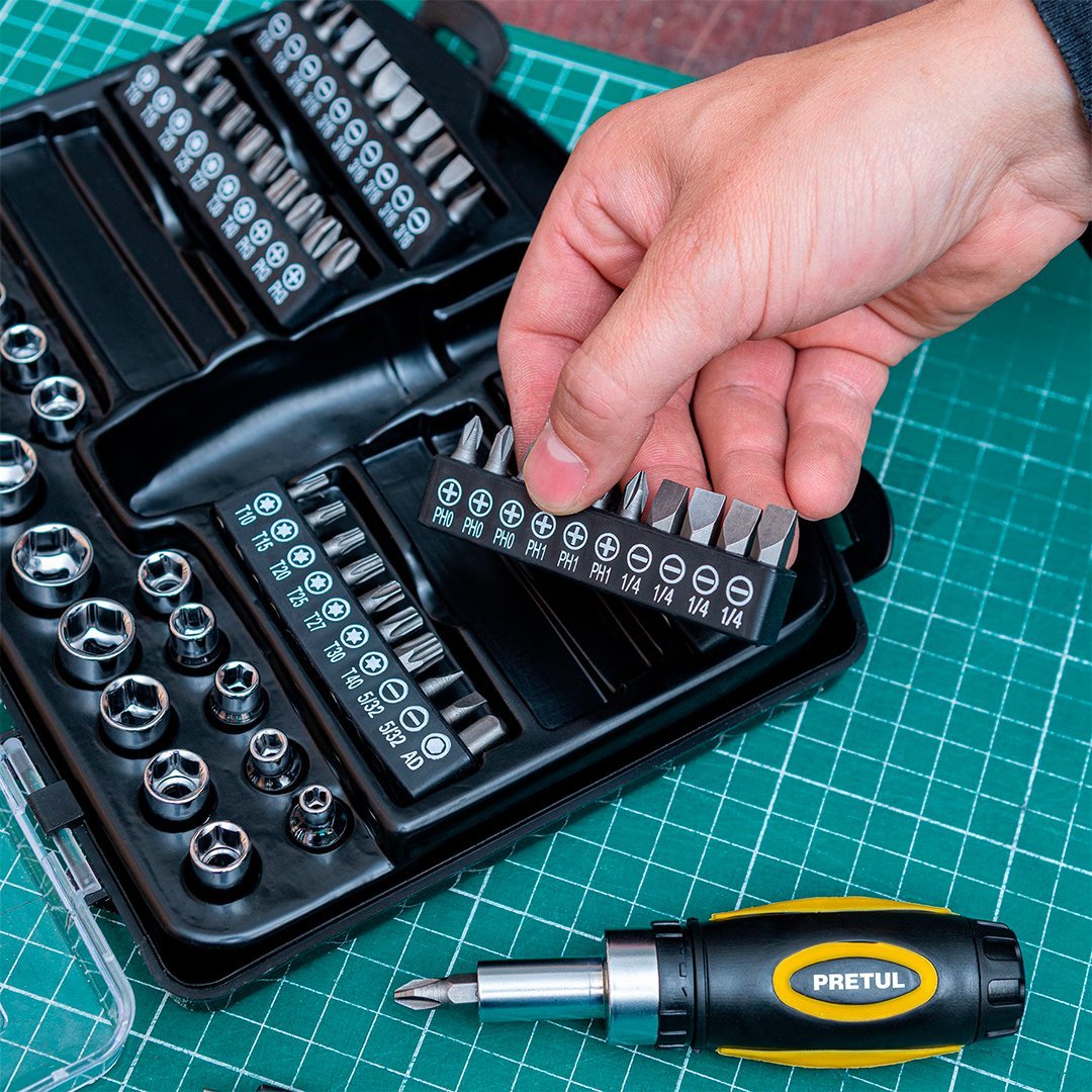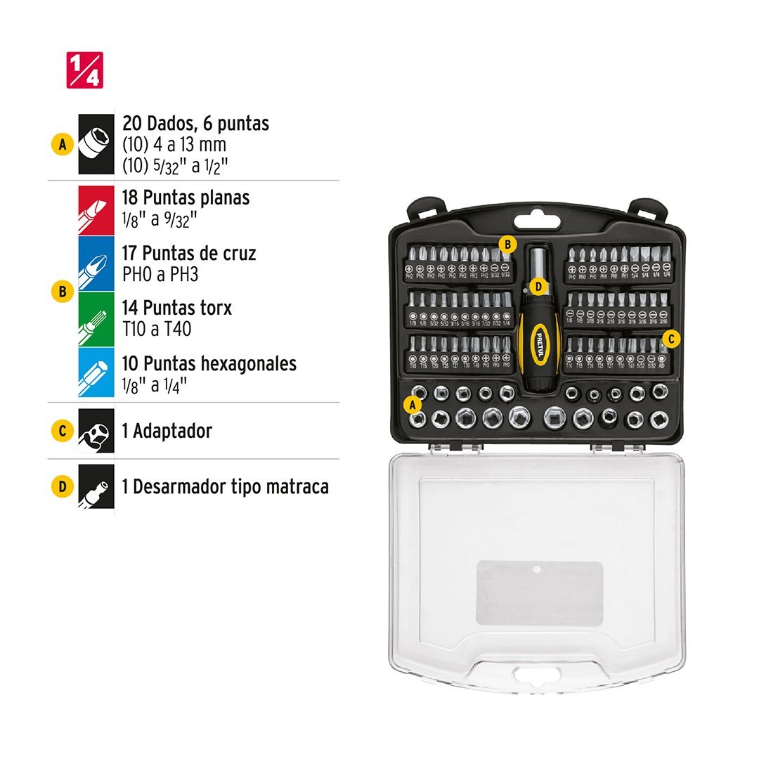 Juego de 81 herramientas para mecánico 1/4" PRETUL cantidad