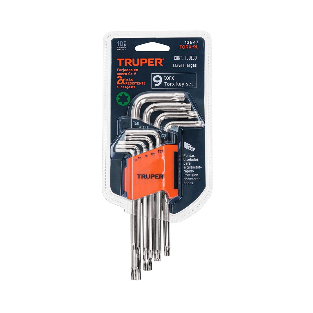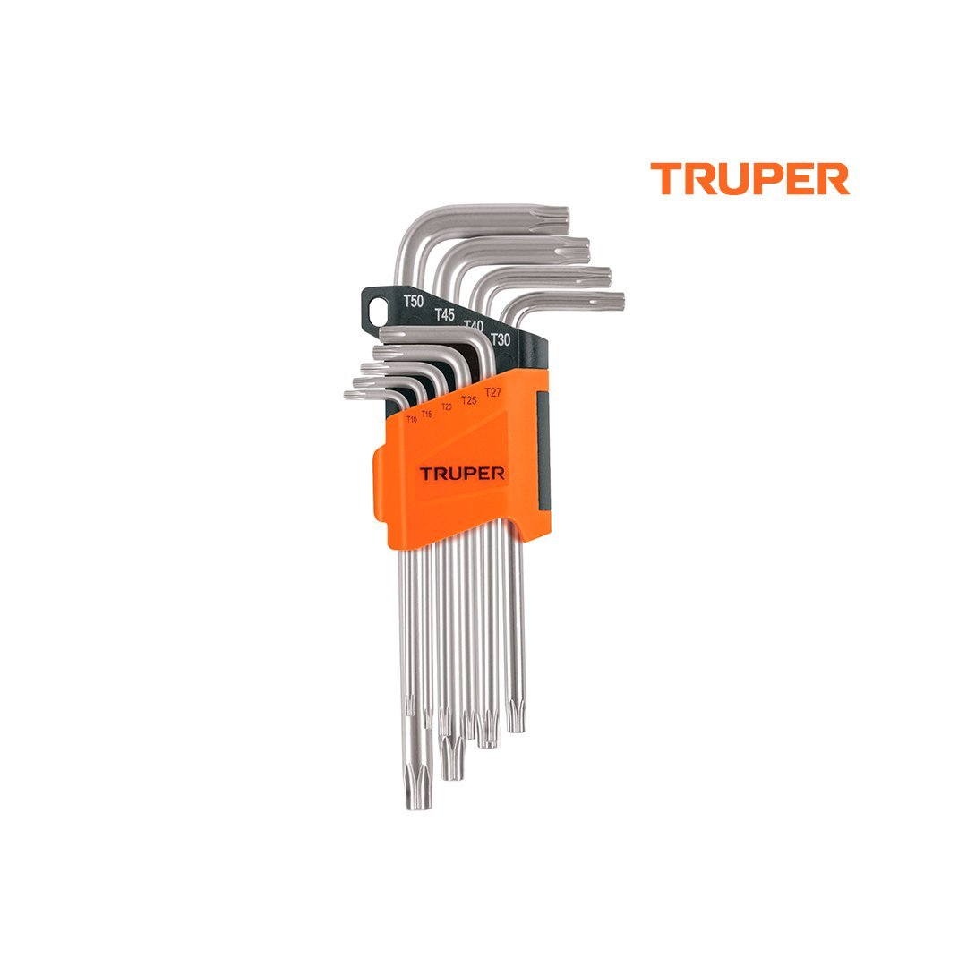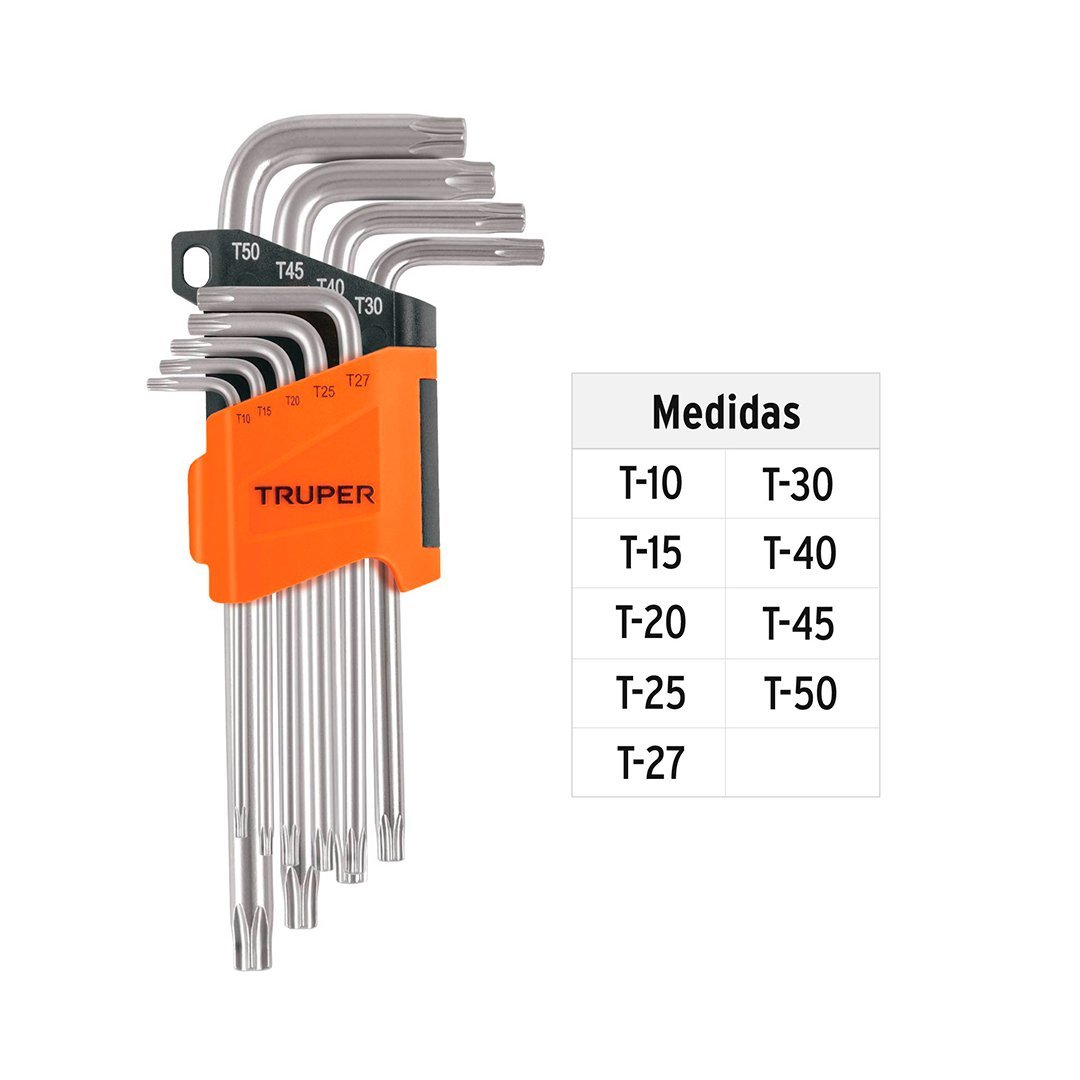 Juego de 9 llaves torx largas con organizador abatible TRUPER