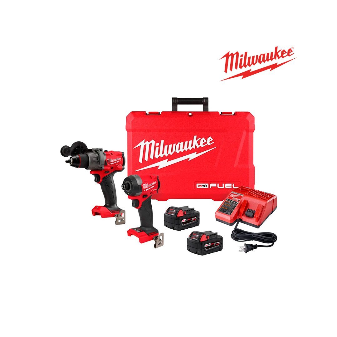 Incluye un taladro percutor M18 FUEL™ de 1/2″, un destornillador de impacto hexagonal M18 FUEL™ de 1/4″, (2) paquete de baterías M18™ REDLITHIUM™ XC de 5,0 Ah, con un cargador M18™/M12™ y un estuche de transporte. Nuestro taladro atornillador M18 FUEL™ de ½” es el taladro más potente de la industria y la solución más compacta