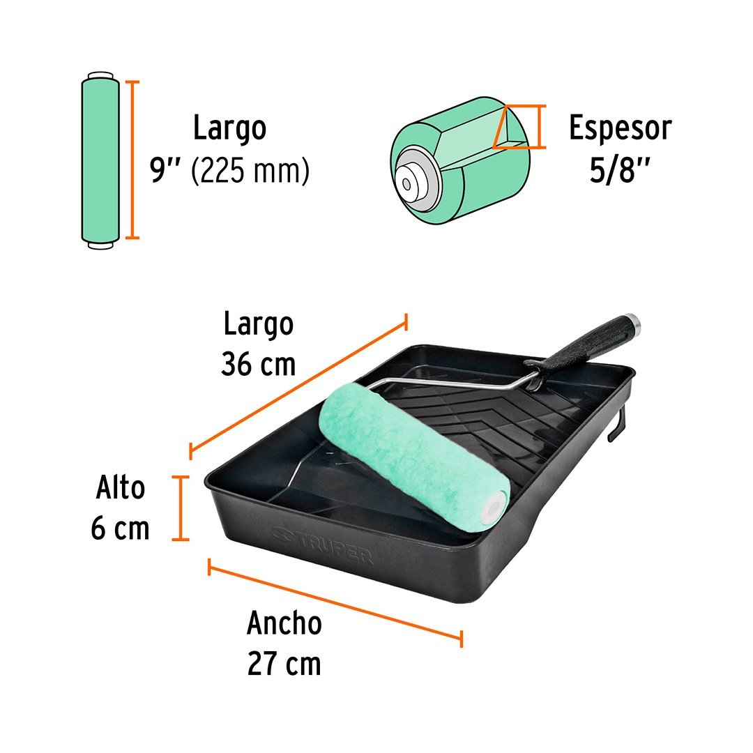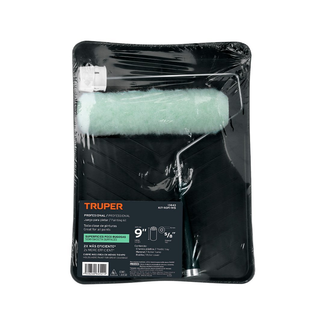 Rodillo profesional ROPI-915 de 9″ 2X más eficiente cubre áreas de mayor tamaño en menos tiempo, uso general para todo tipo de pinturas y superficies poco rugosas