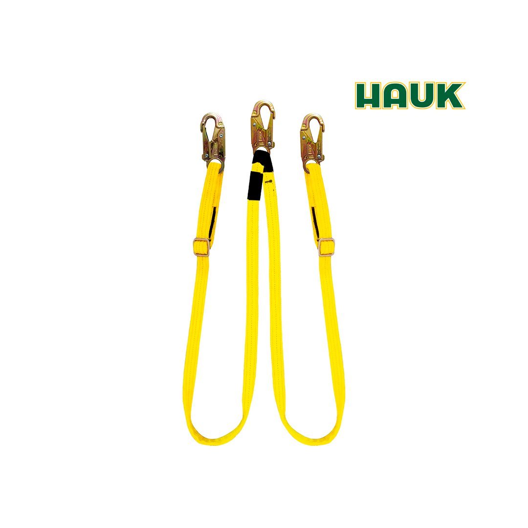 Línea de Conexión Doble Regulable de 1.80 m de Cinta Poliéster y 3 Ganchos de 3/4″ HAUK