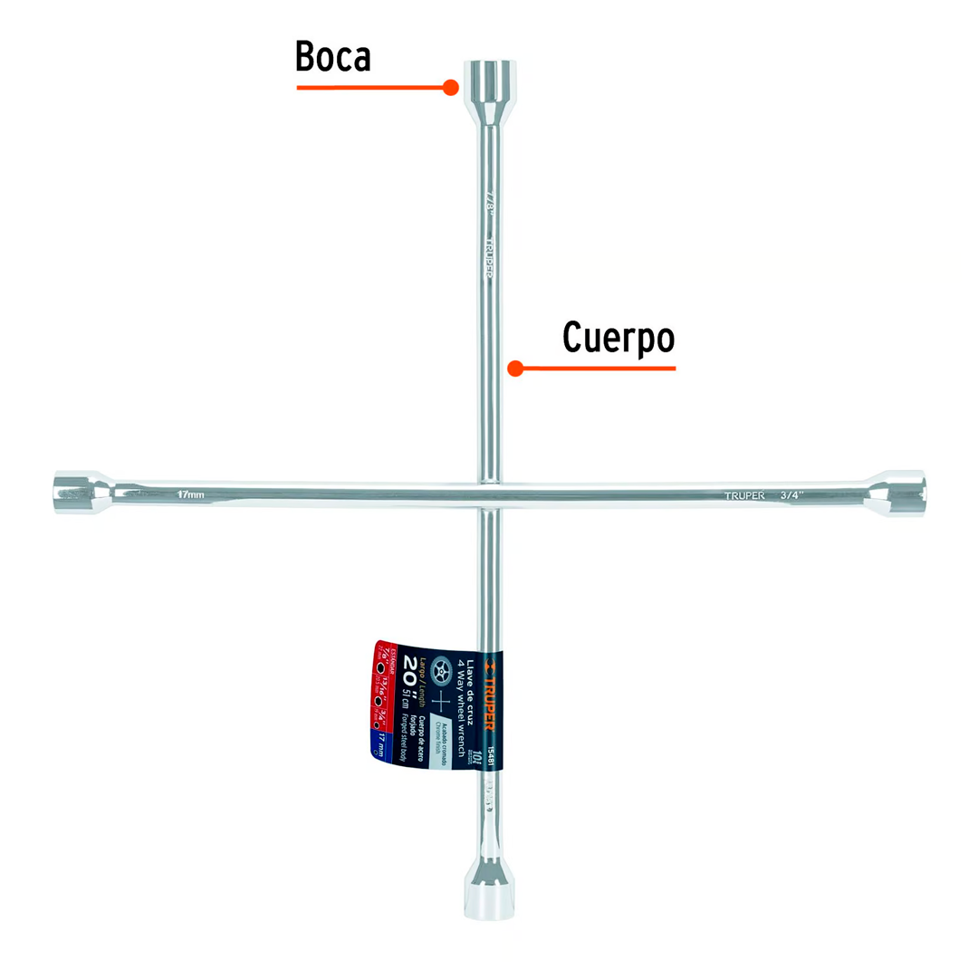 | Incluye | Llave de cruz 20″ pulida y cromada, Truper |