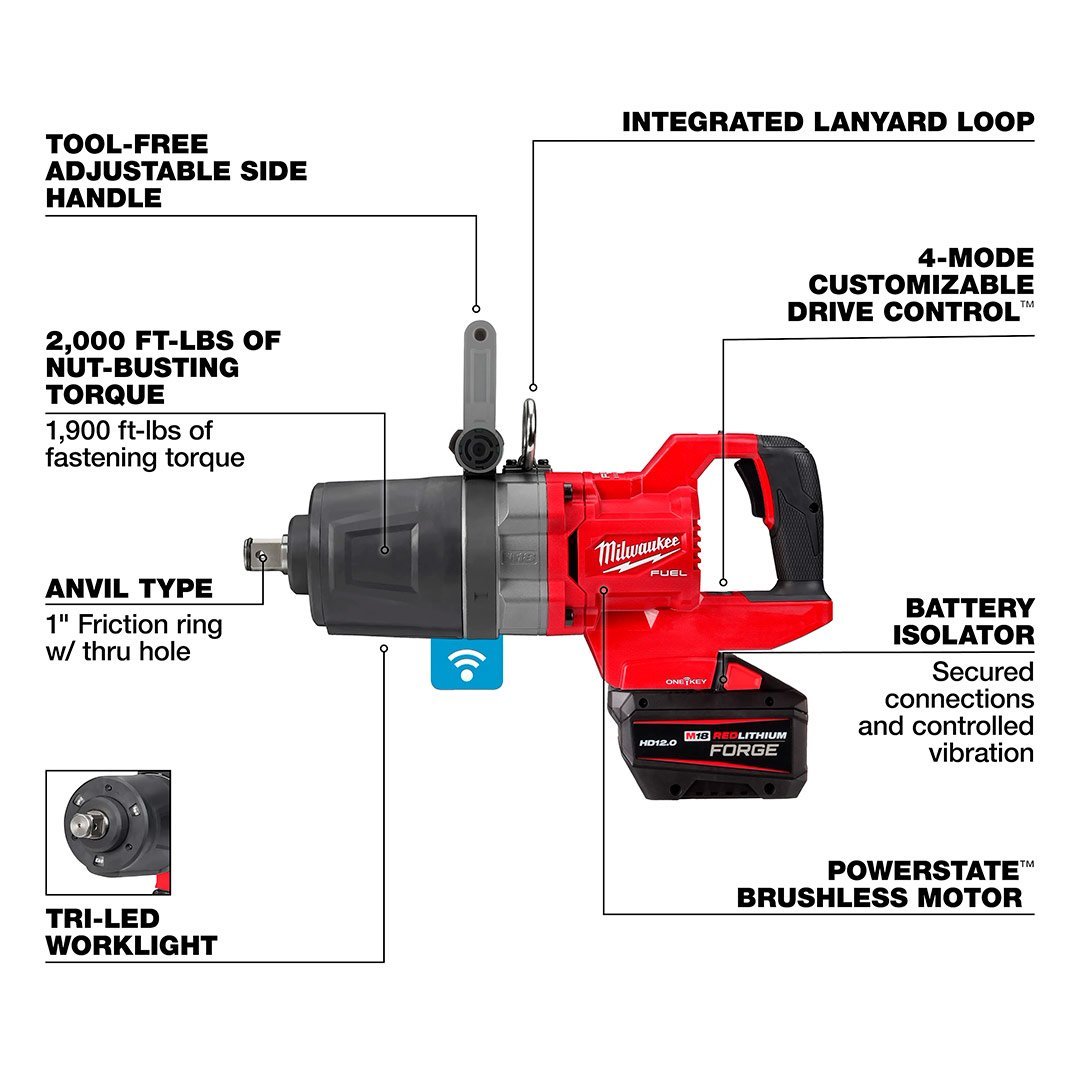 Llave De Impacto De Alto Torque Con Mango En D De 1″ M18 Fuel Con KIT ONE-KEY Milwaukee