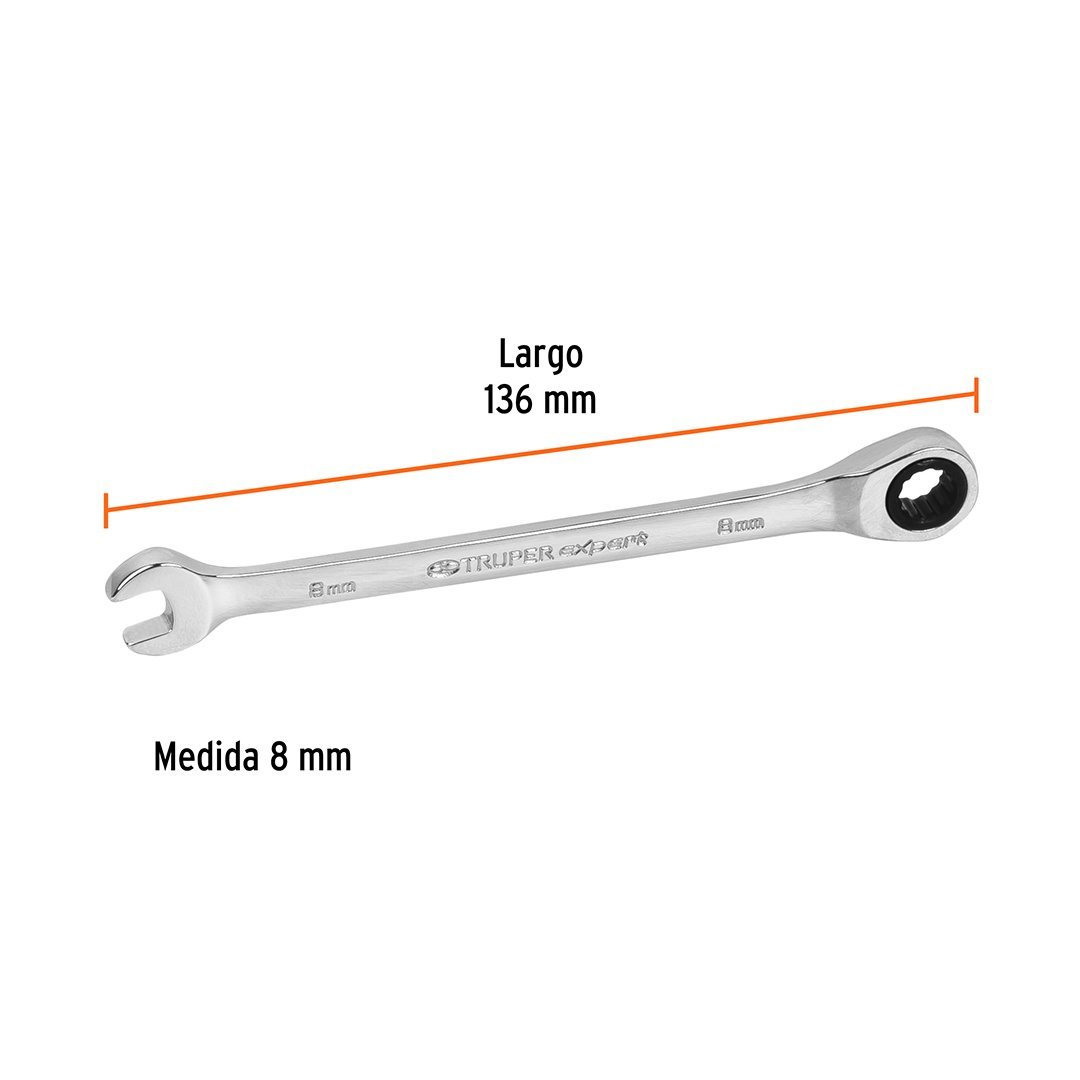 Llave mixta con ratchet 8 mm x 136 mm TRUPER
