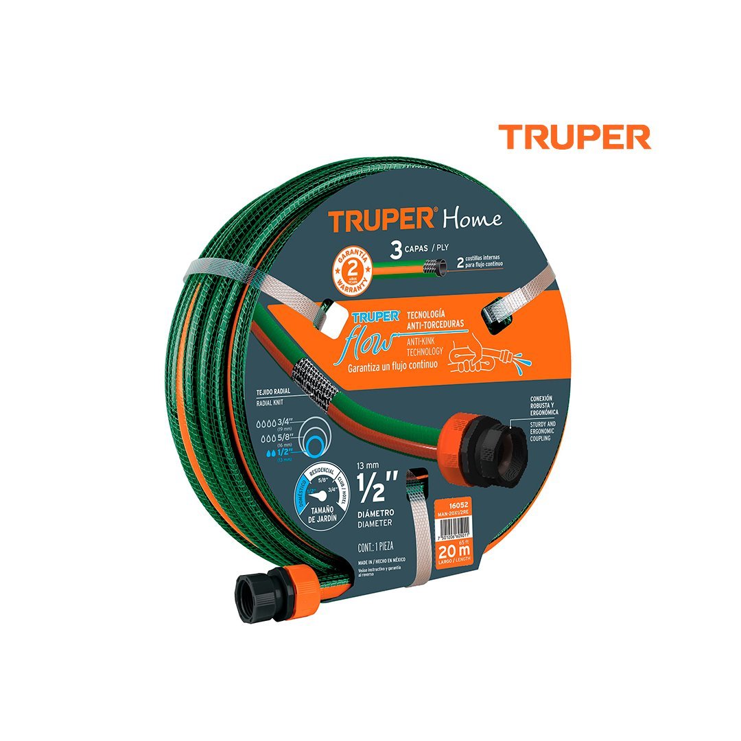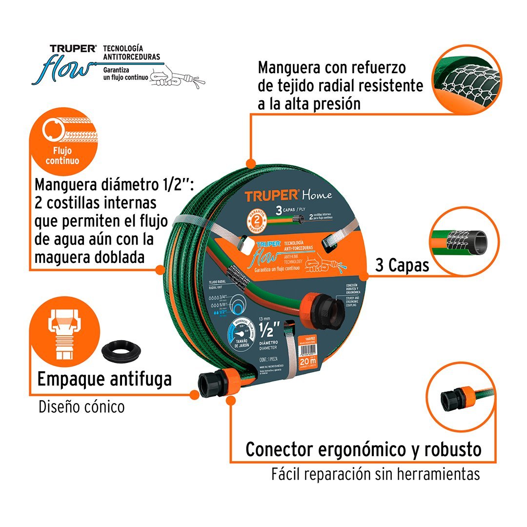 Manguera 1/2″ reforzada 20 m conexiones plásticas TRUPER