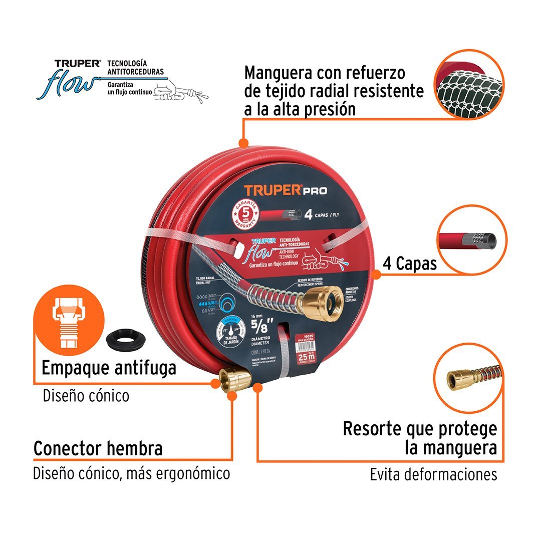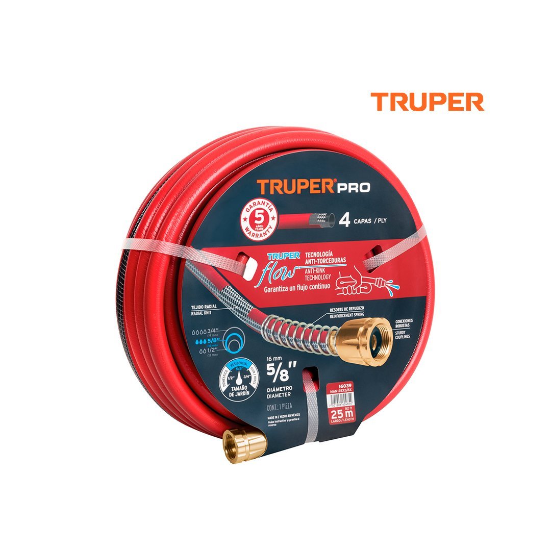 Manguera 5/8" super reforzada 25 m conexiones metálicas TRUPER cantidad