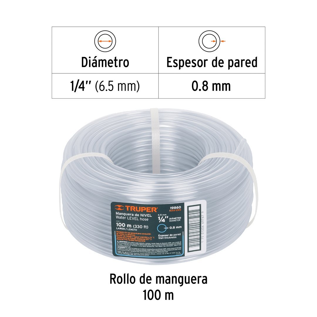 Manguera de nivel 1/4" rollo de 100 m TRUPER cantidad