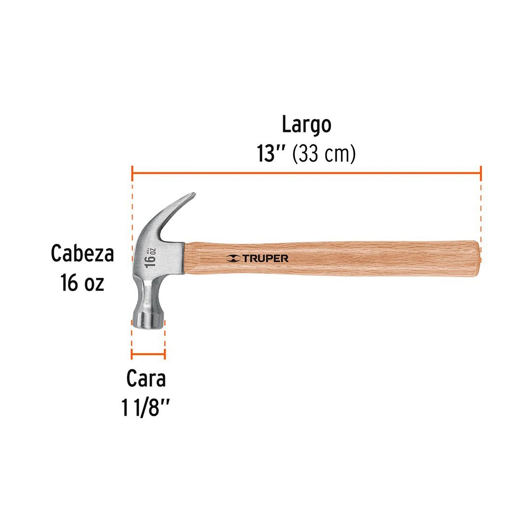 Martillo pulido 16 oz uña curva, mango madera TRUPER cantidad