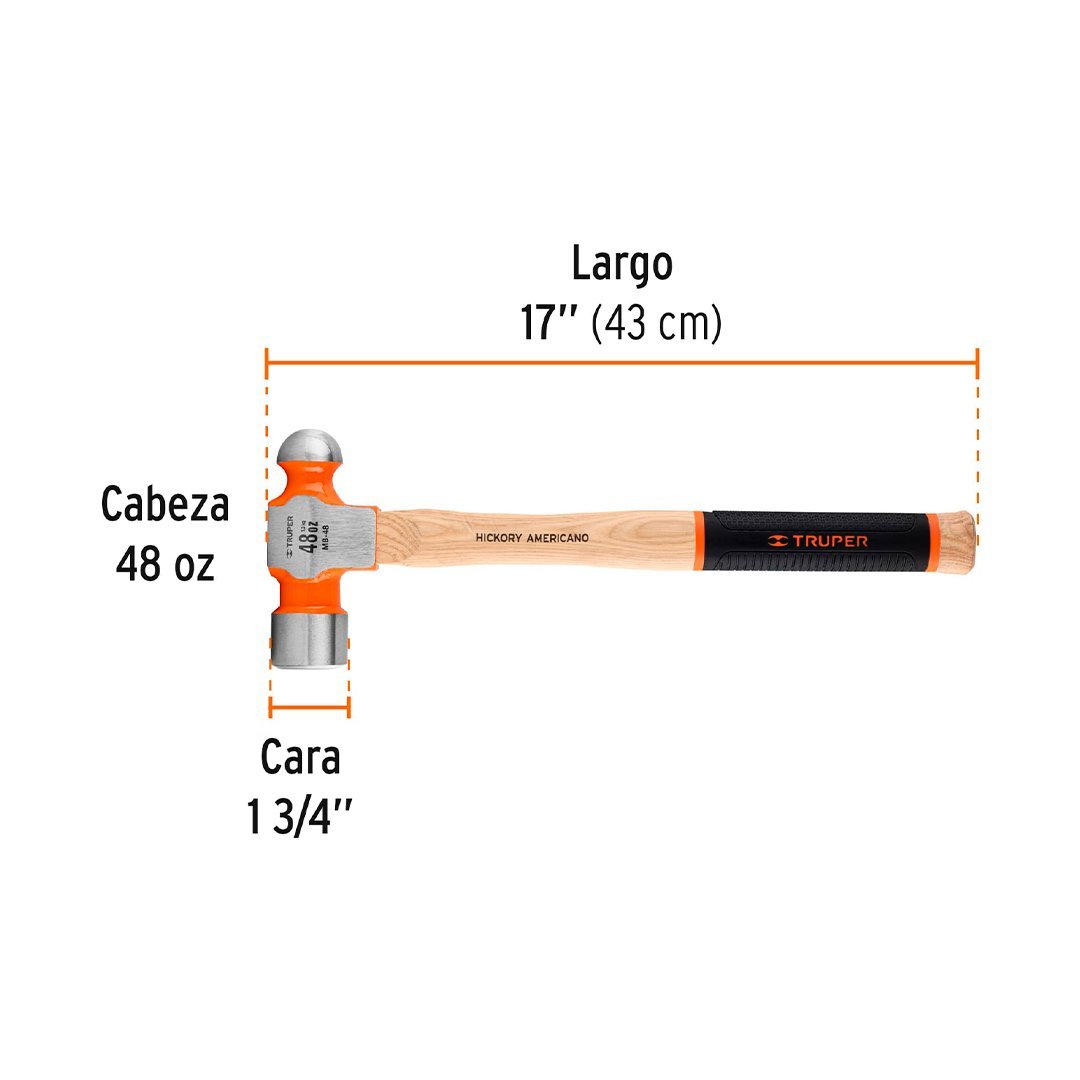 Martillo pulido de bola 48 oz mango hickory TRUPER cantidad