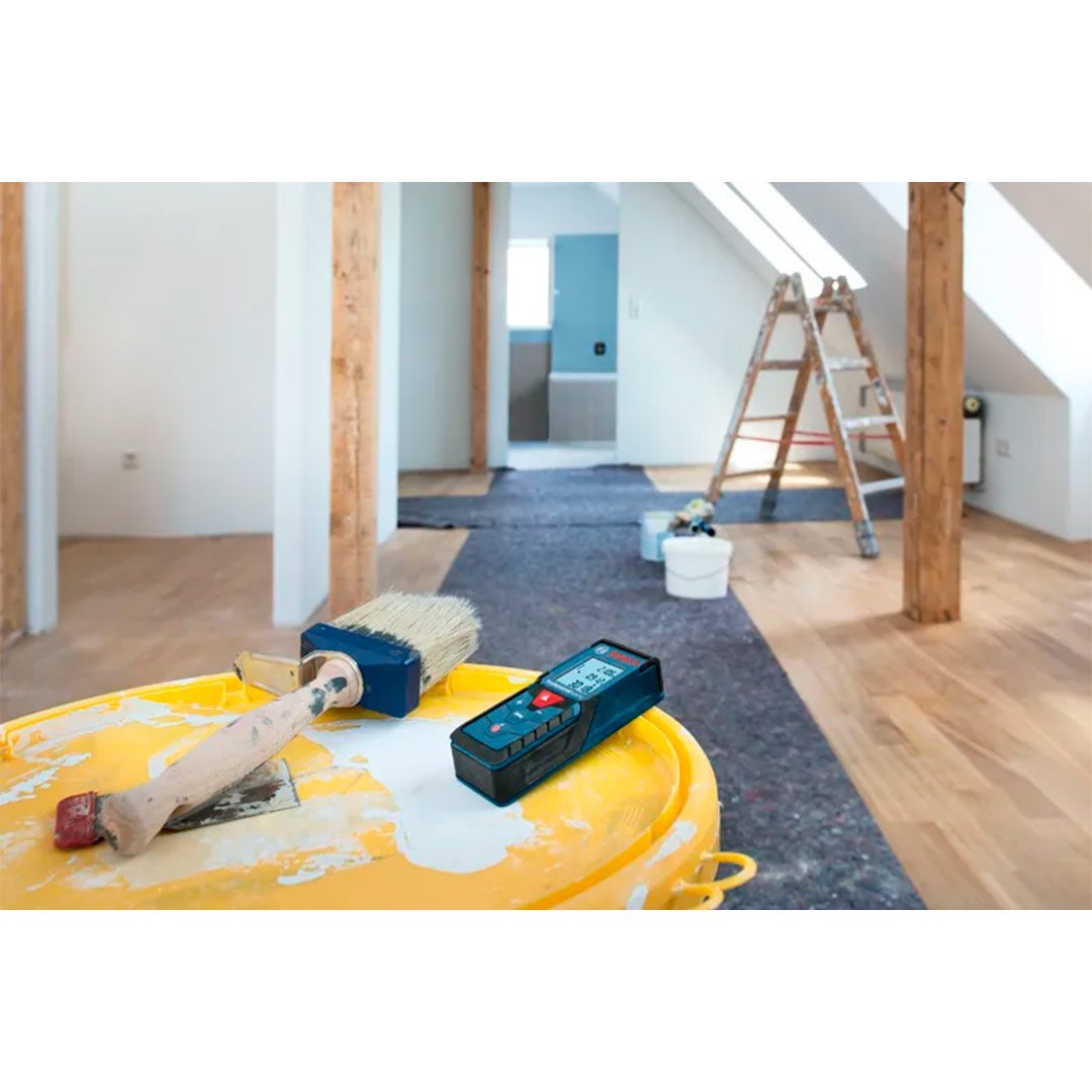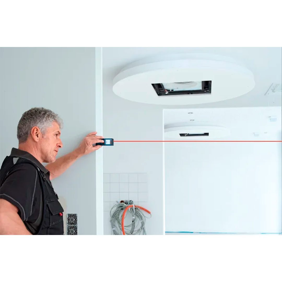 Cinta métrica láser para mediciones de hasta 40 metros que hace las cuentas por usted: calcule áreas, volúmenes e incluso alturas directamente en el aparato.