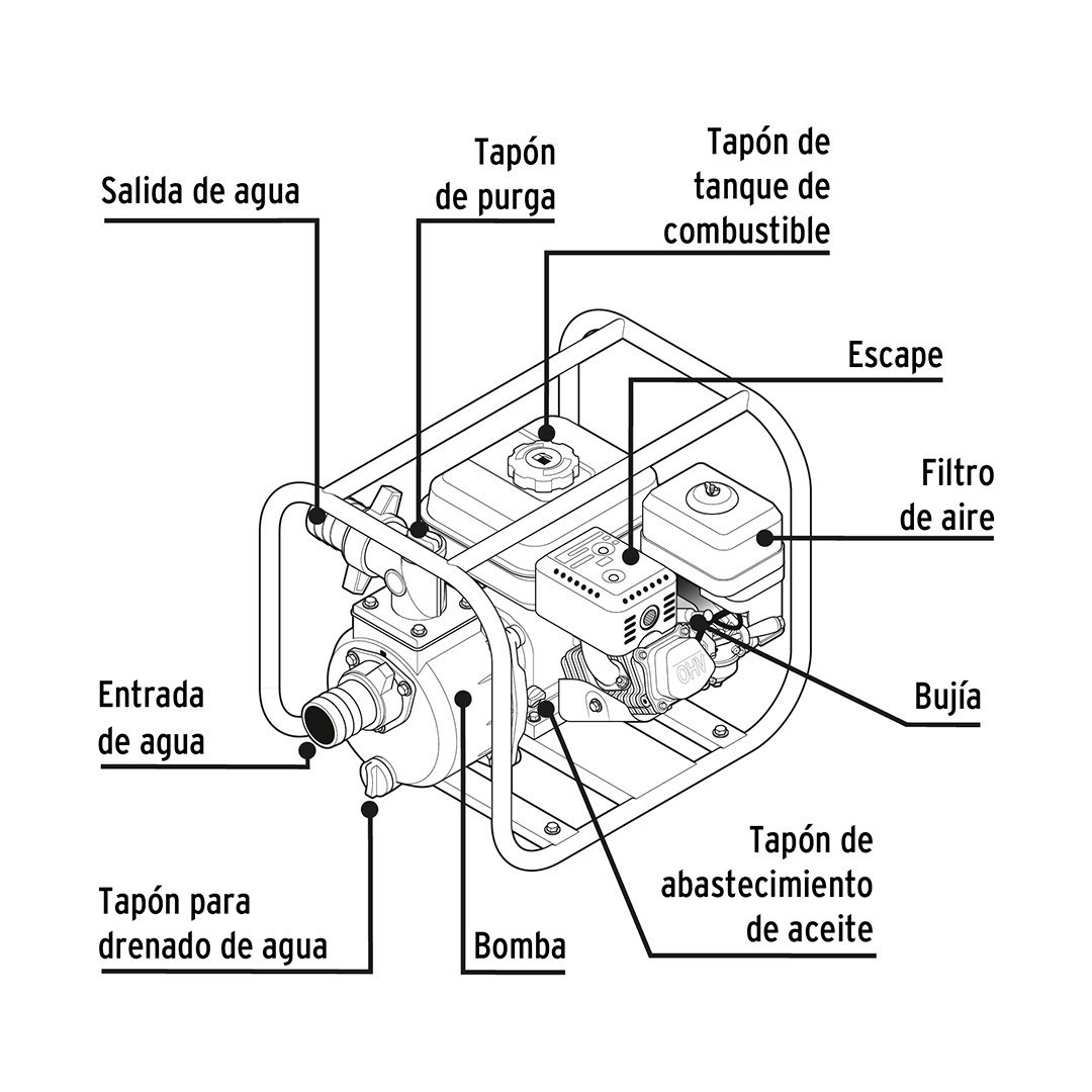 Motobomba 2″ x 2″ a gasolina 6 1/2 HP PRETUL