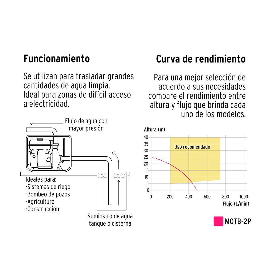 Ideal para sistemas de riego, bombeo de pozos, agricultura y construcción. Para zonas de difícil acceso a electricidad