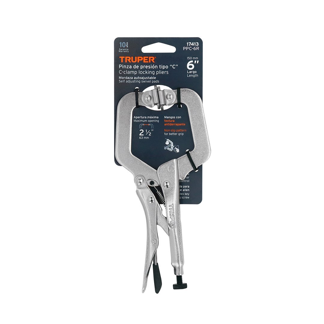 Pinza de presión 6″ tipo «C» con mordaza autoajustable TRUPER