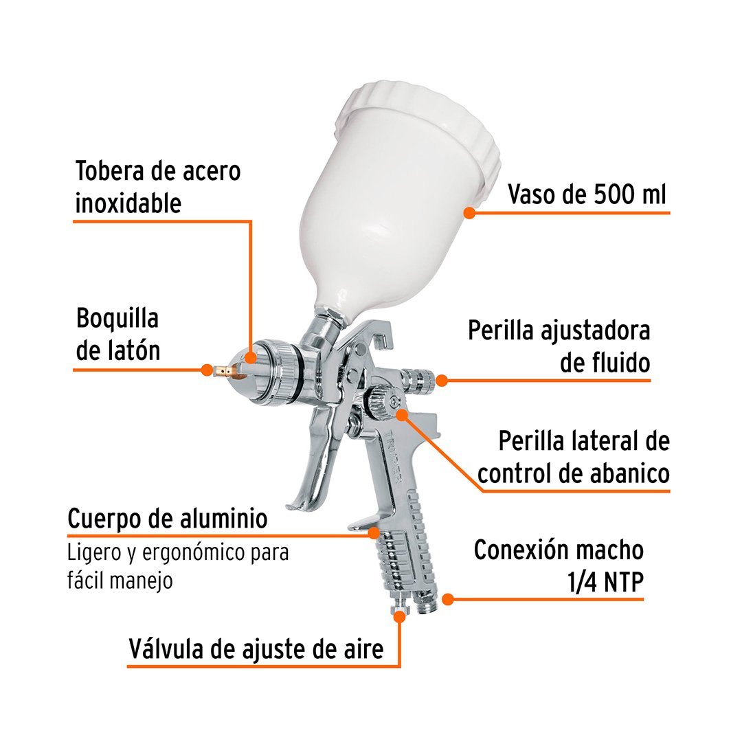 Pistola de aire de gravedad HVLP para pintar, vaso plástico 500 ml, 1.7 mm TRUPER