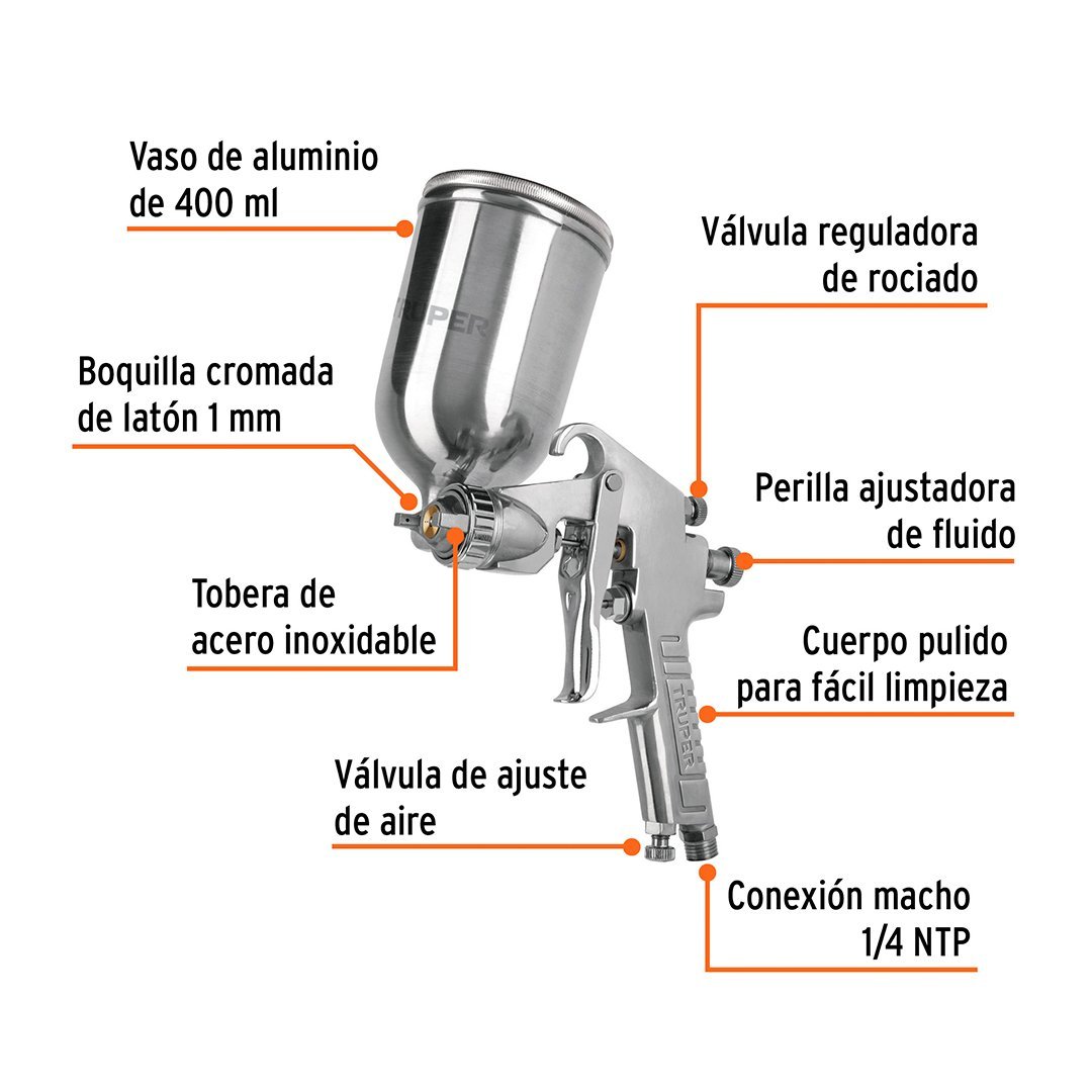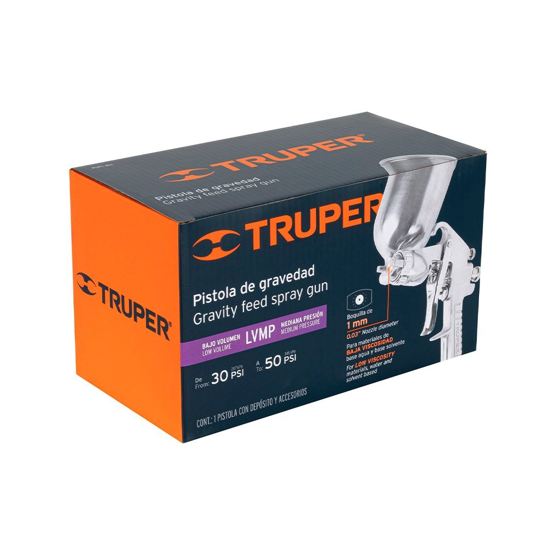 Pistola de aire de gravedad LVMP para pintar, vaso aluminio 400 ml, 1 mm TRUPER