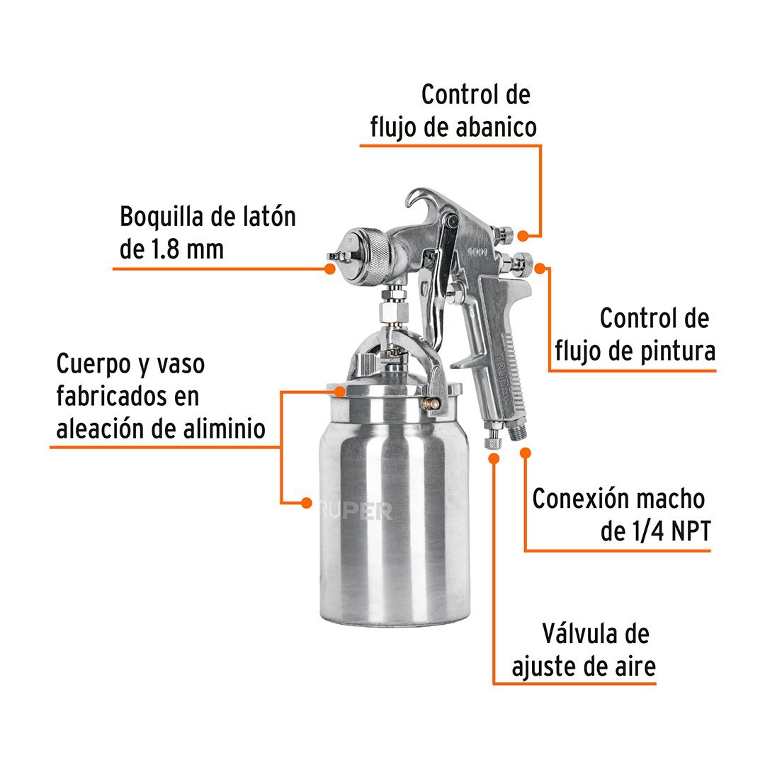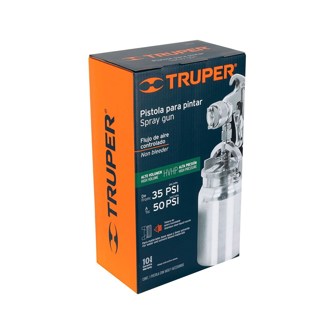 Pistola de aire para pintar de succión HVHP vaso aluminio, 1.8 mm TRUPER