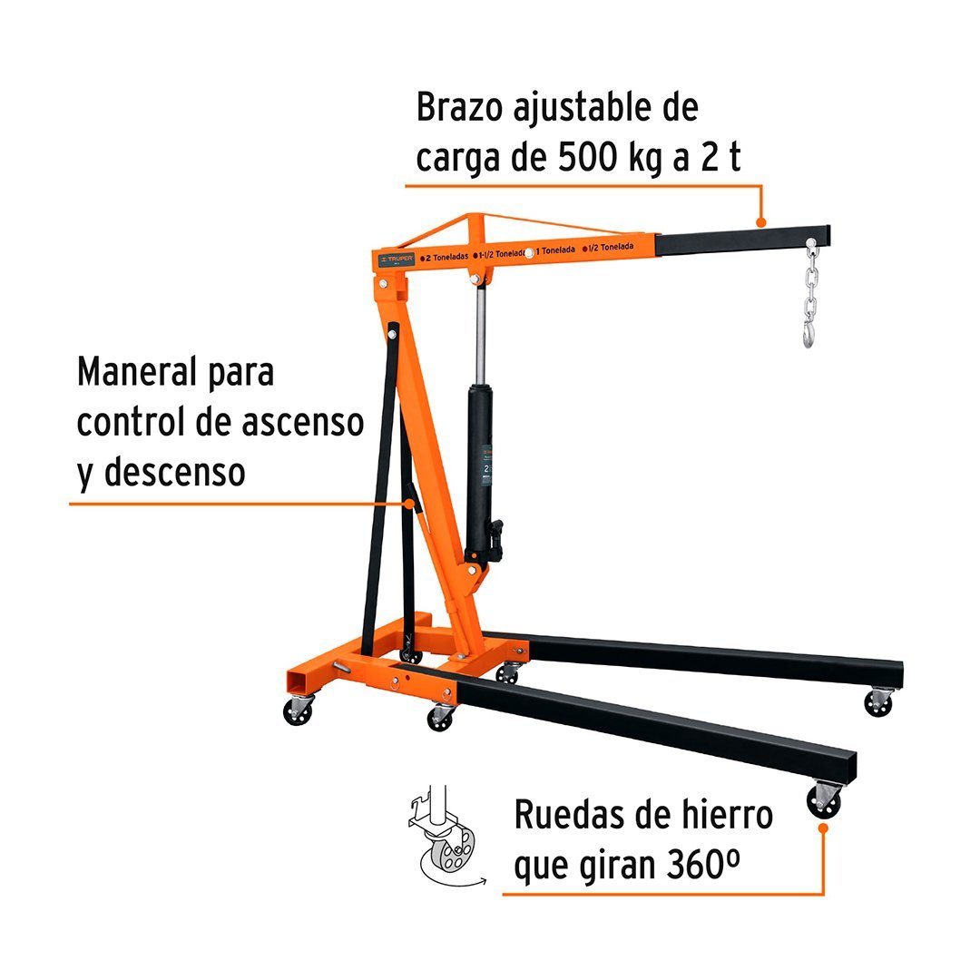 Pluma hidráulica 2 toneladas, plegable TRUPER cantidad