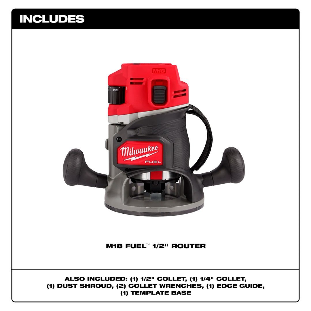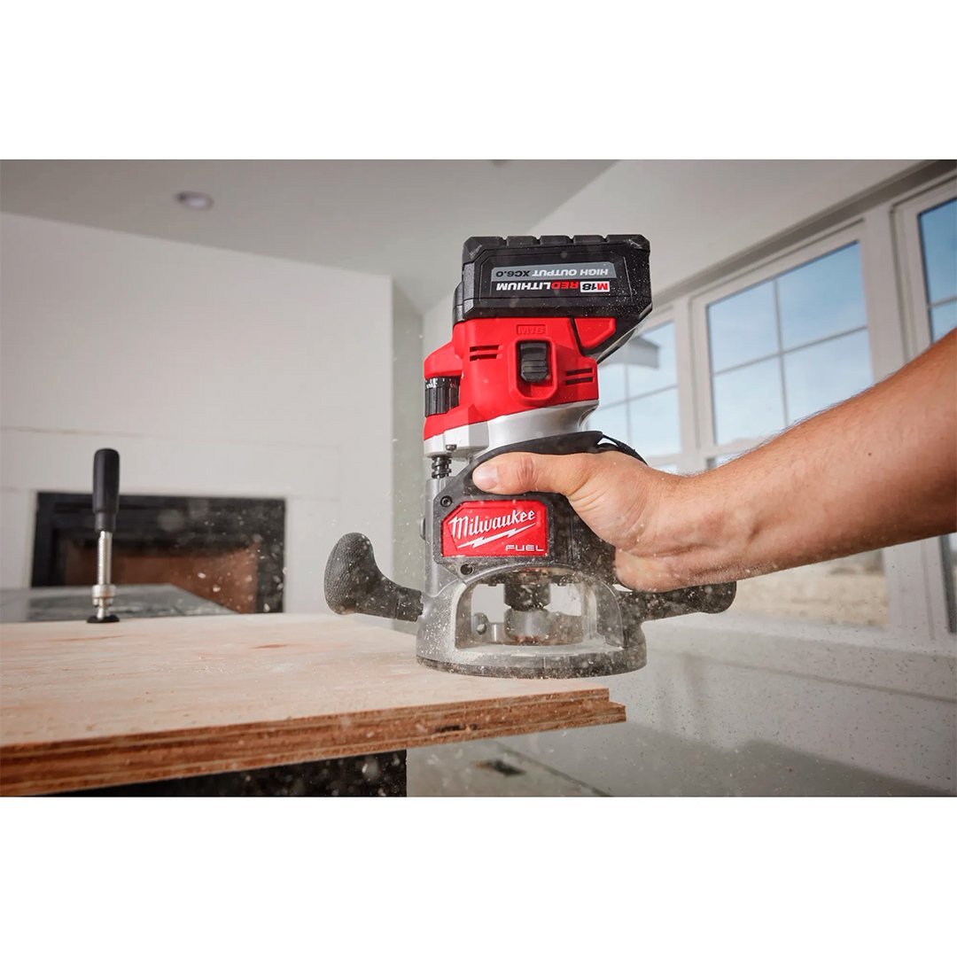 Diseñada para el carpintero y remodelador profesional, la rebajadora M18 FUEL™ de ½” de MILWAUKEE® ofrece el mejor rendimiento inalámbrico de su clase con una potencia máxima de 2.25 HP, el mejor control y comodidad en la aplicación, y más de 225 pies lineales de tiempo de operación por carga. El motor sin escobillas POWERSTATE™ ofrece menos retrasos con carga para cortes limpios y precisos y mayor productividad.