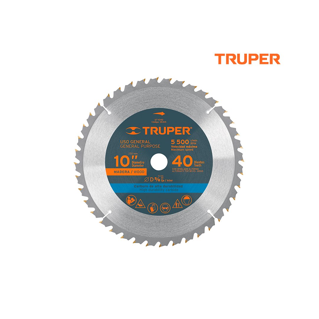Sierra circular de 10″ para madera, 40 dientes centro 5/8″ TRUPER
