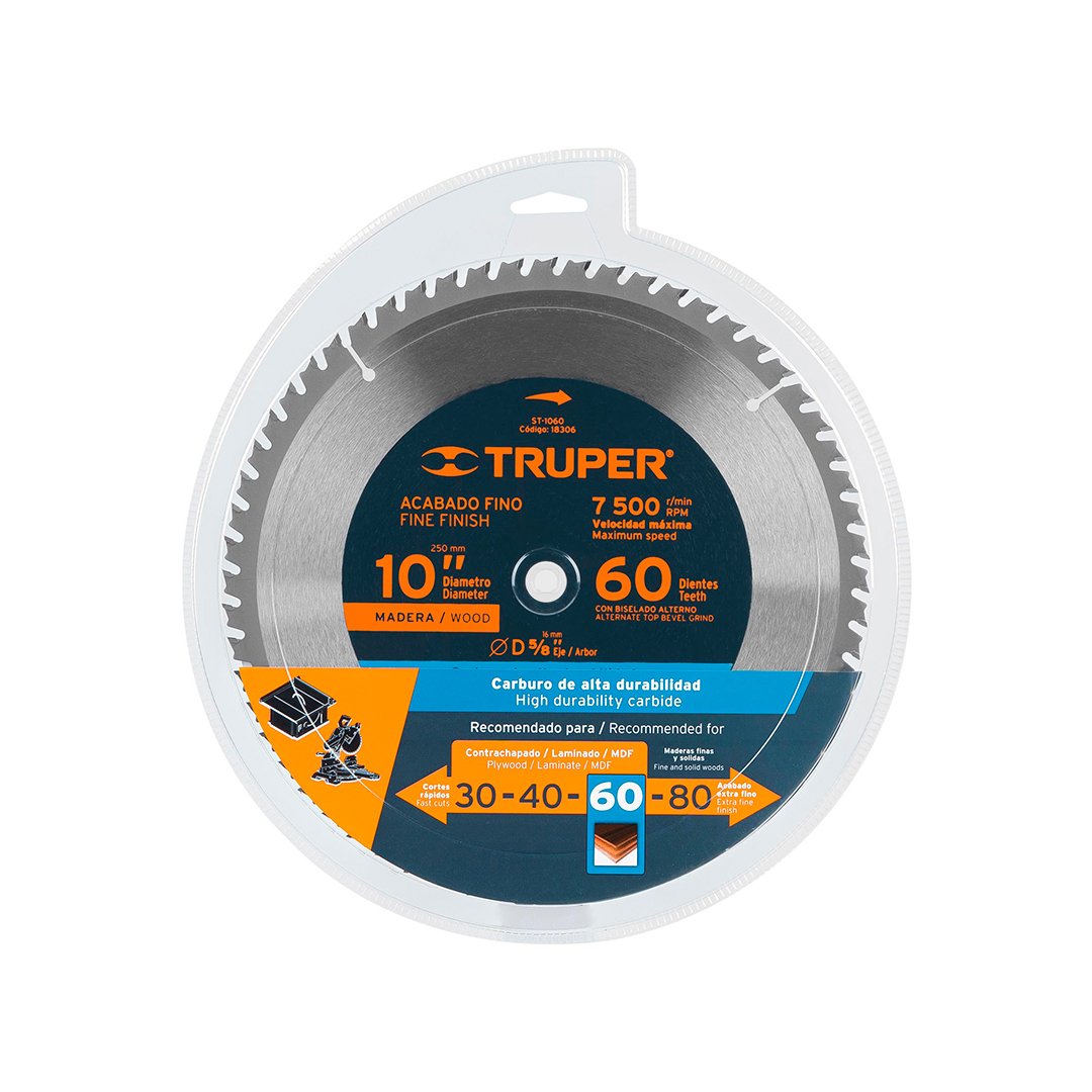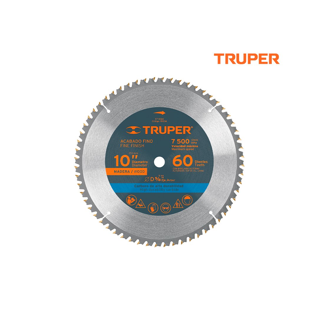 Sierra circular de 10″ para madera, 60 dientes centro 5/8″ TRUPER