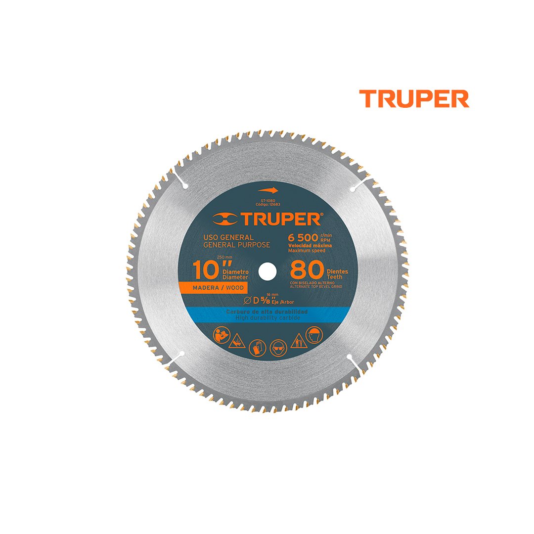Sierra circular de 10″ para madera, 80 dientes centro 5/8″ TRUPER