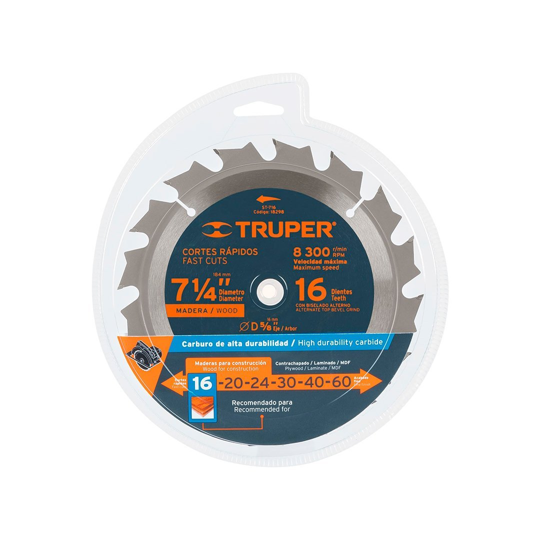 Sierra circular de 7 1/4″ para madera, 16 dientes TRUPER