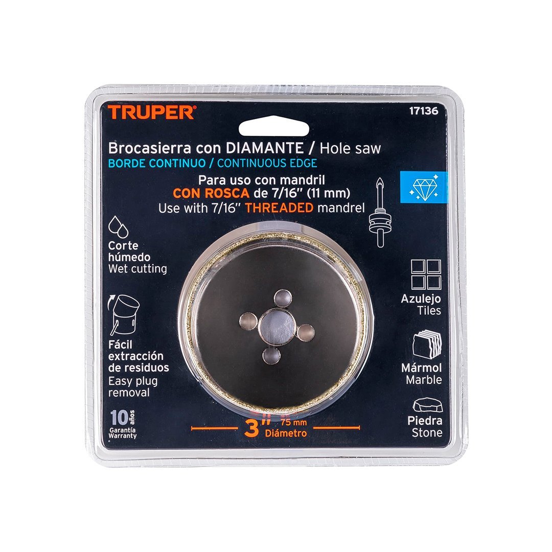 Sierra copa con diamante de 3″ borde continuo TRUPER
