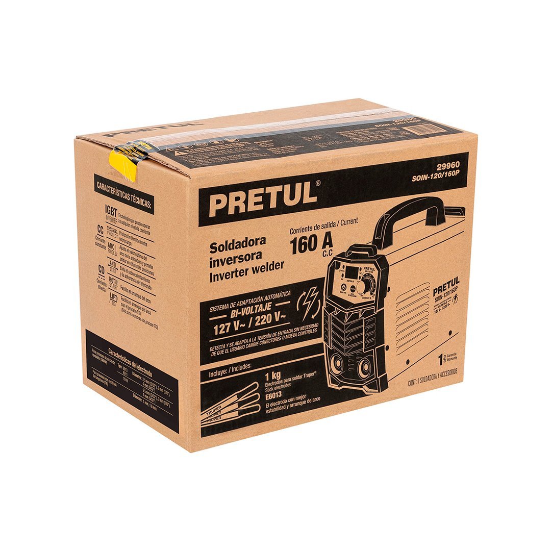 Soldadora inversora 160A, Bi-voltaje PRETUL