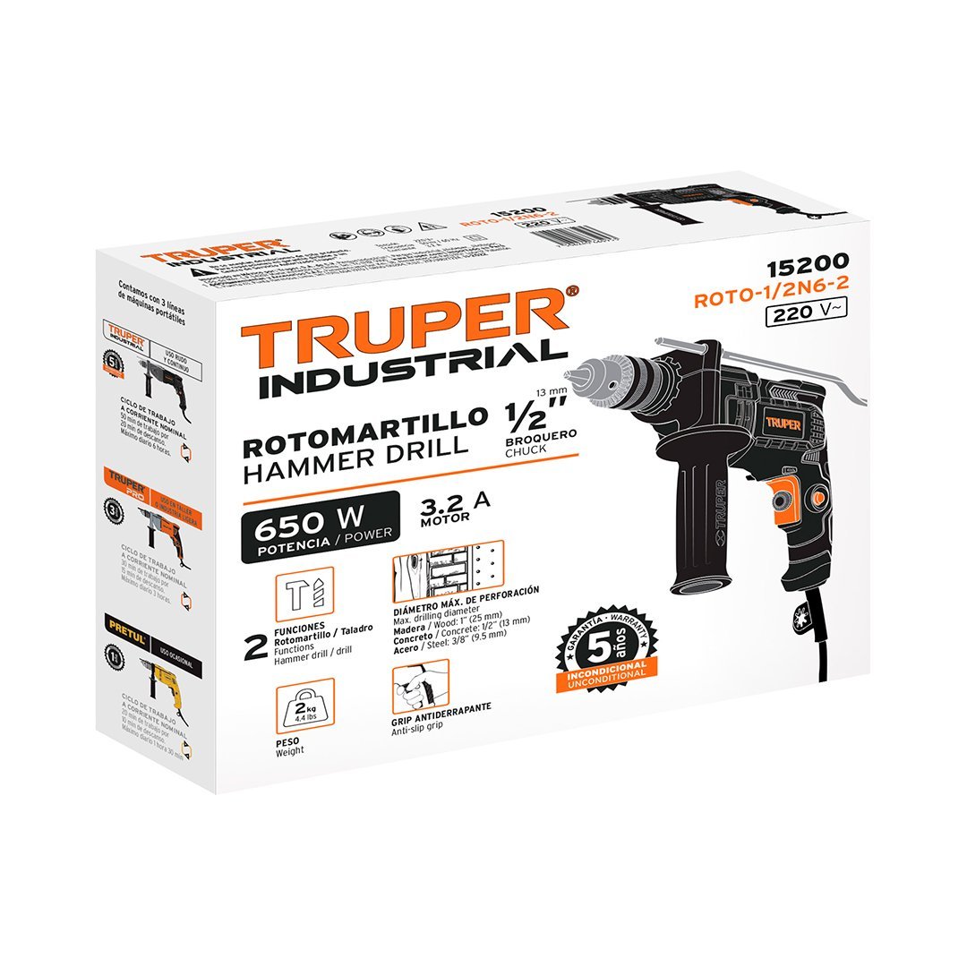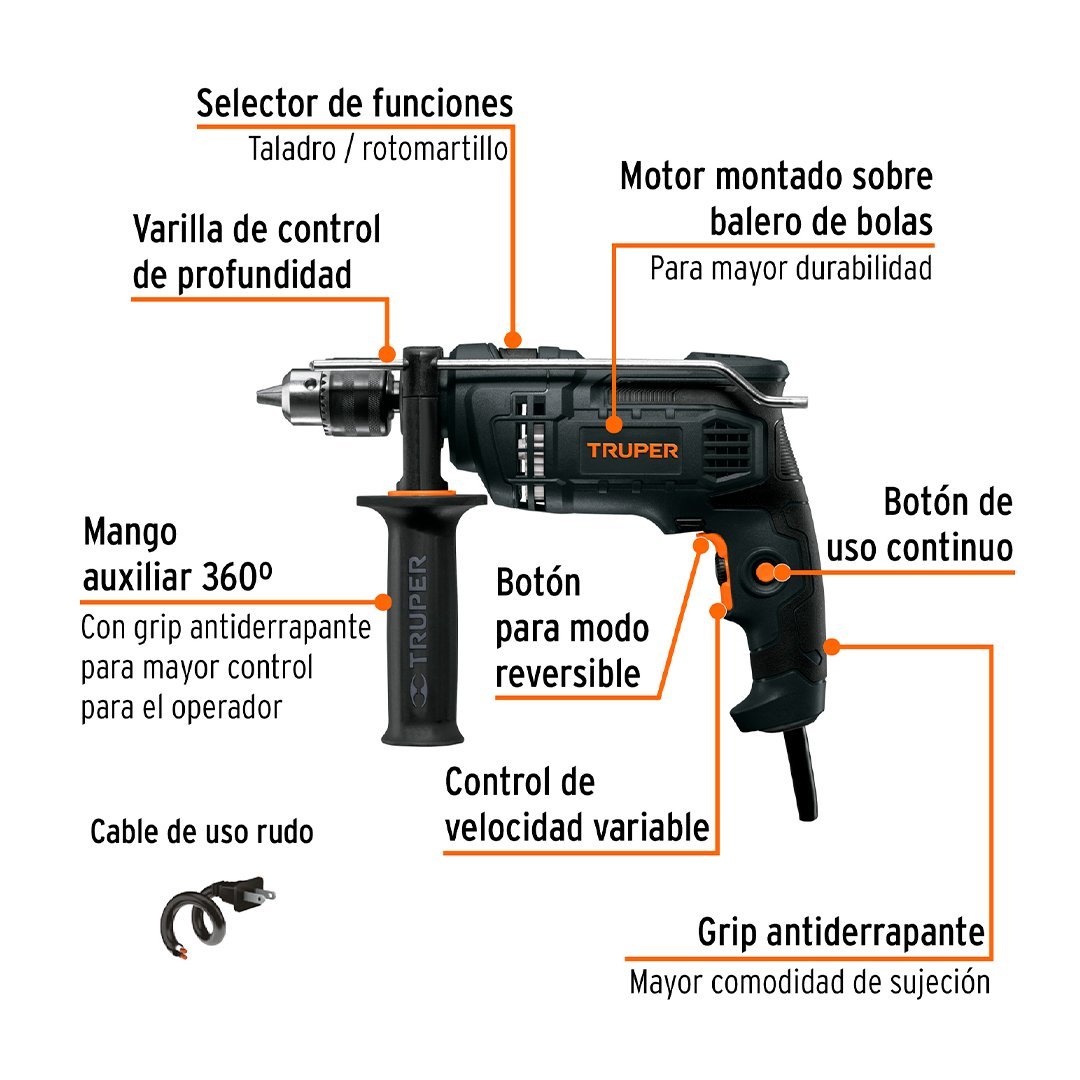 | Ø Perforación en concreto | 1/2″ (13 mm) |