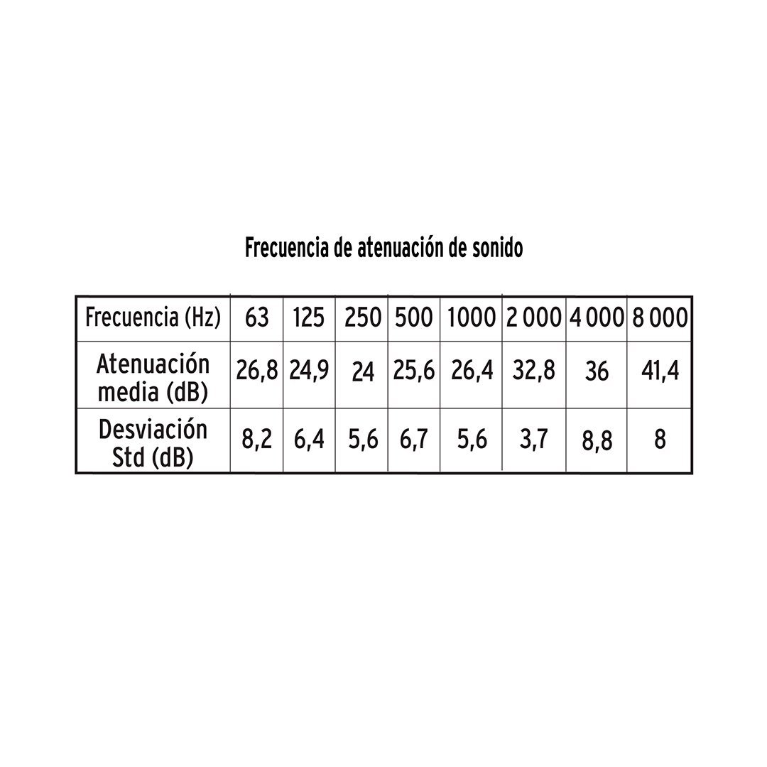 • Nivel de reducción de ruido: 25 dB (NRR)