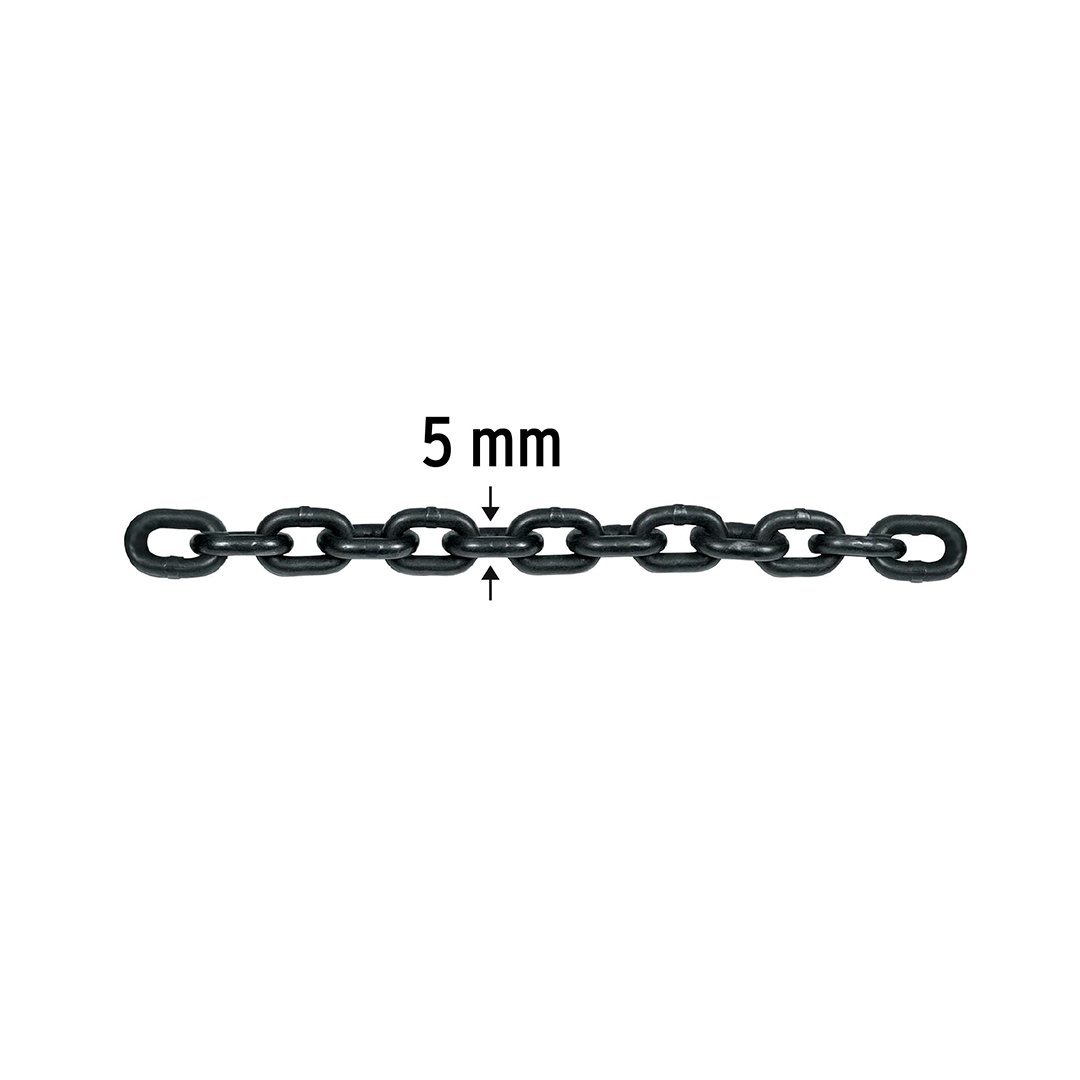 • Cadena de carga fabricada en acero al manganeso, resistente y durable