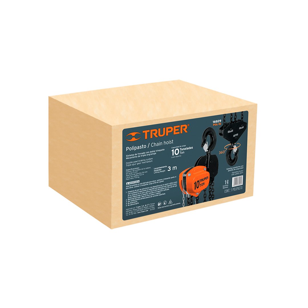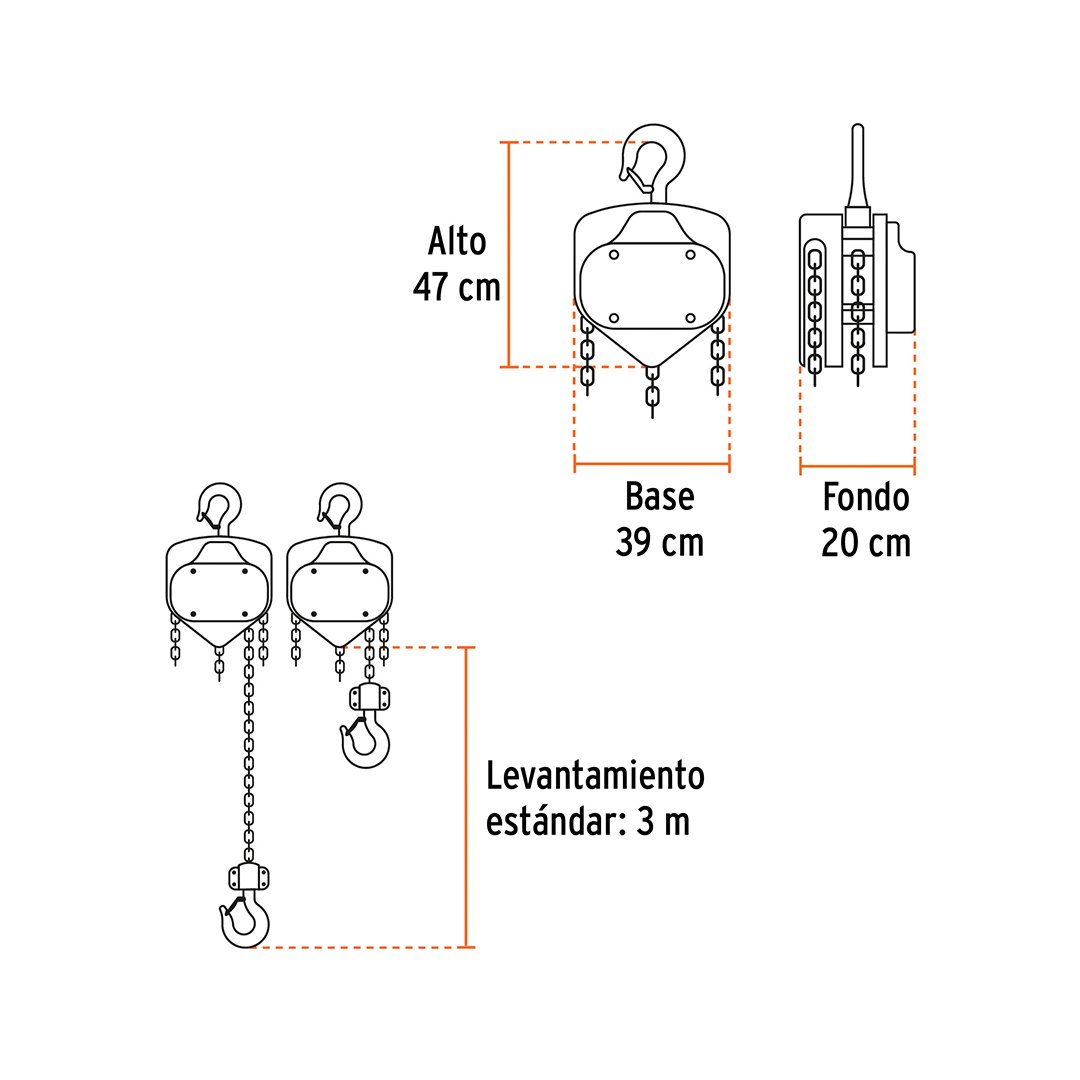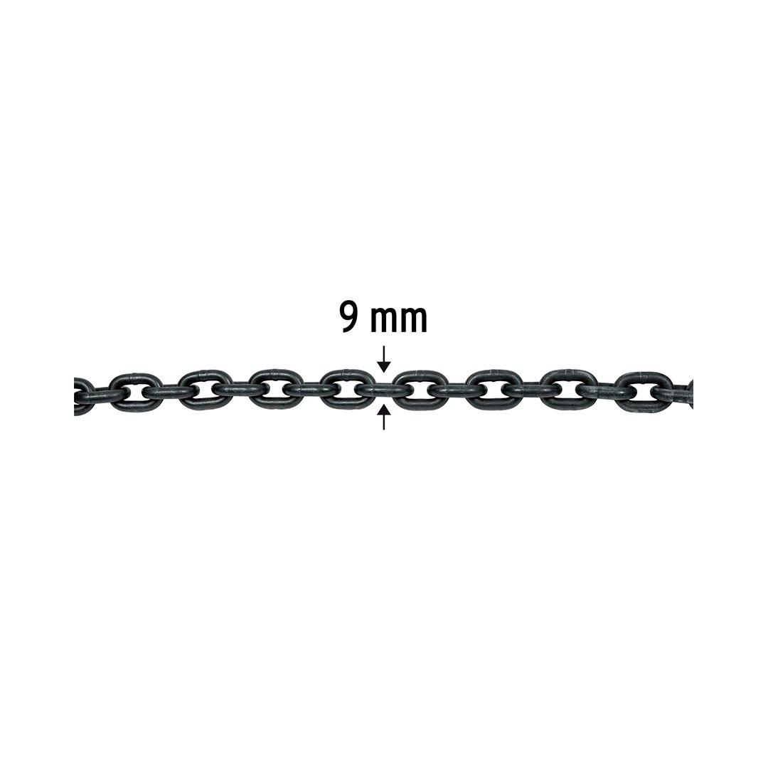 • Cadena de carga fabricada en acero al manganeso, resistente y durable