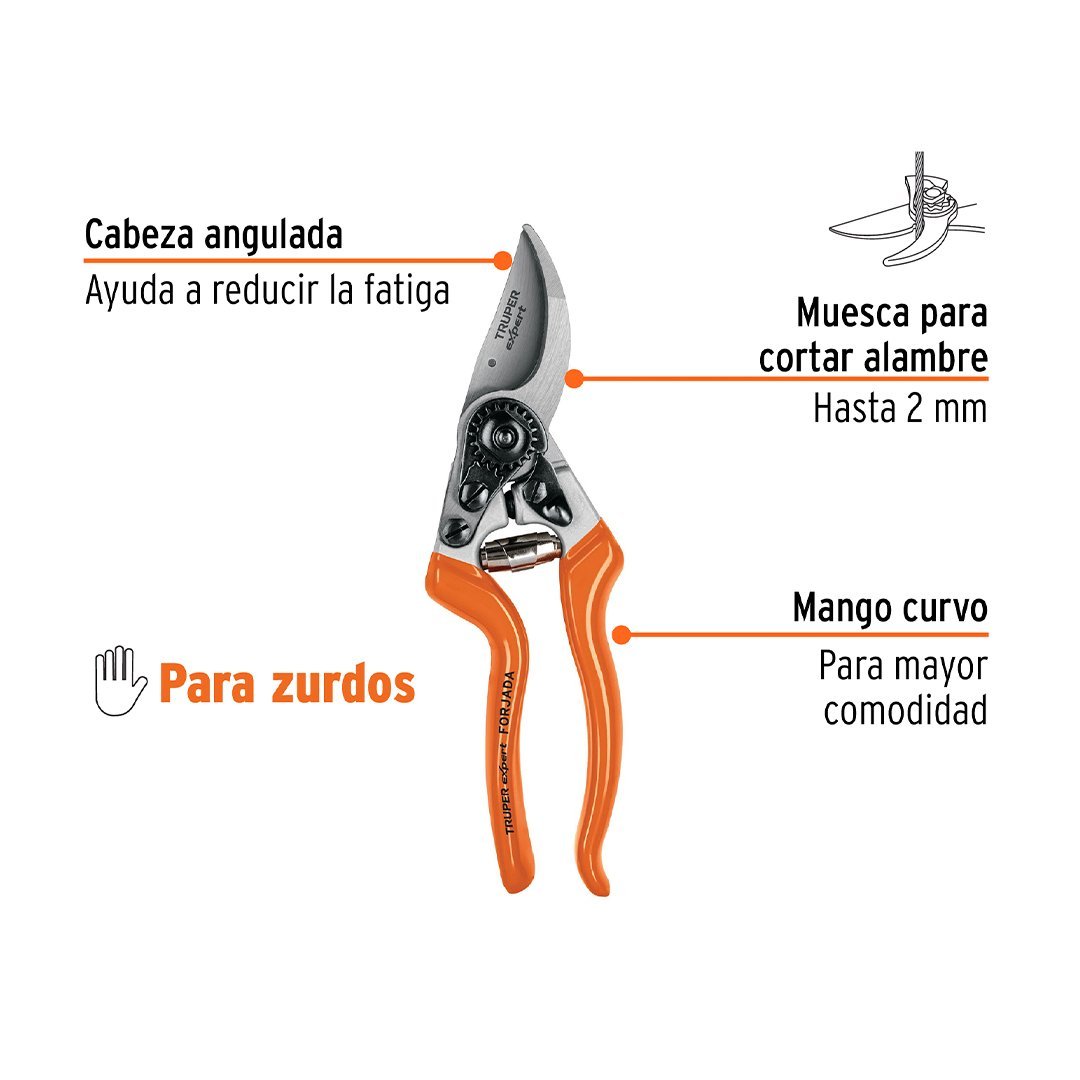 Tijera profesional para poda 8″ de aluminio forjado para zurdo TRUPER